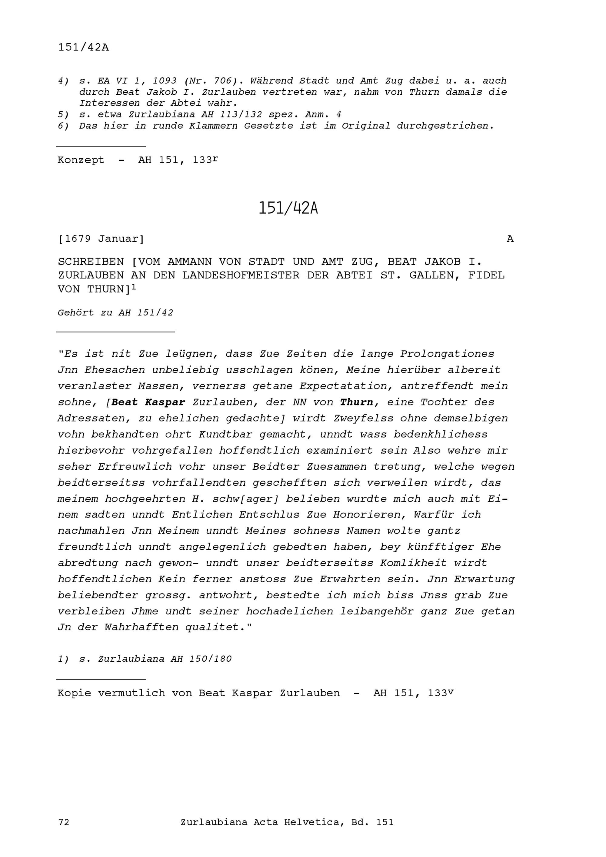 Schreiben von Beat Kaspar Zurlauben, Landschreiber der Freien Ämter, an Fidel von Thurn, Landeshofmeister der Abtei Sankt Gallen