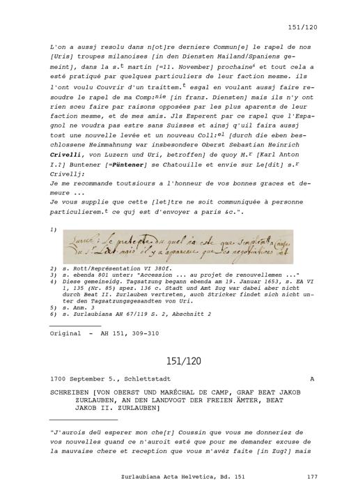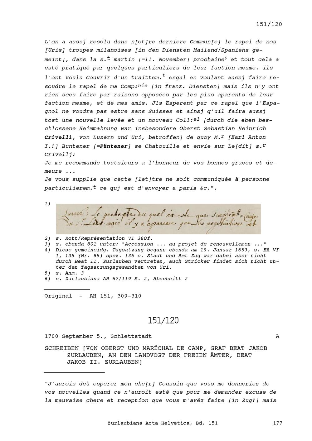 Schreiben von Johann Jakob Stricker, Landrat Uri und Gardehauptmann, an Beat II. Zurlauben, Stadt- und Amtrat Zug
