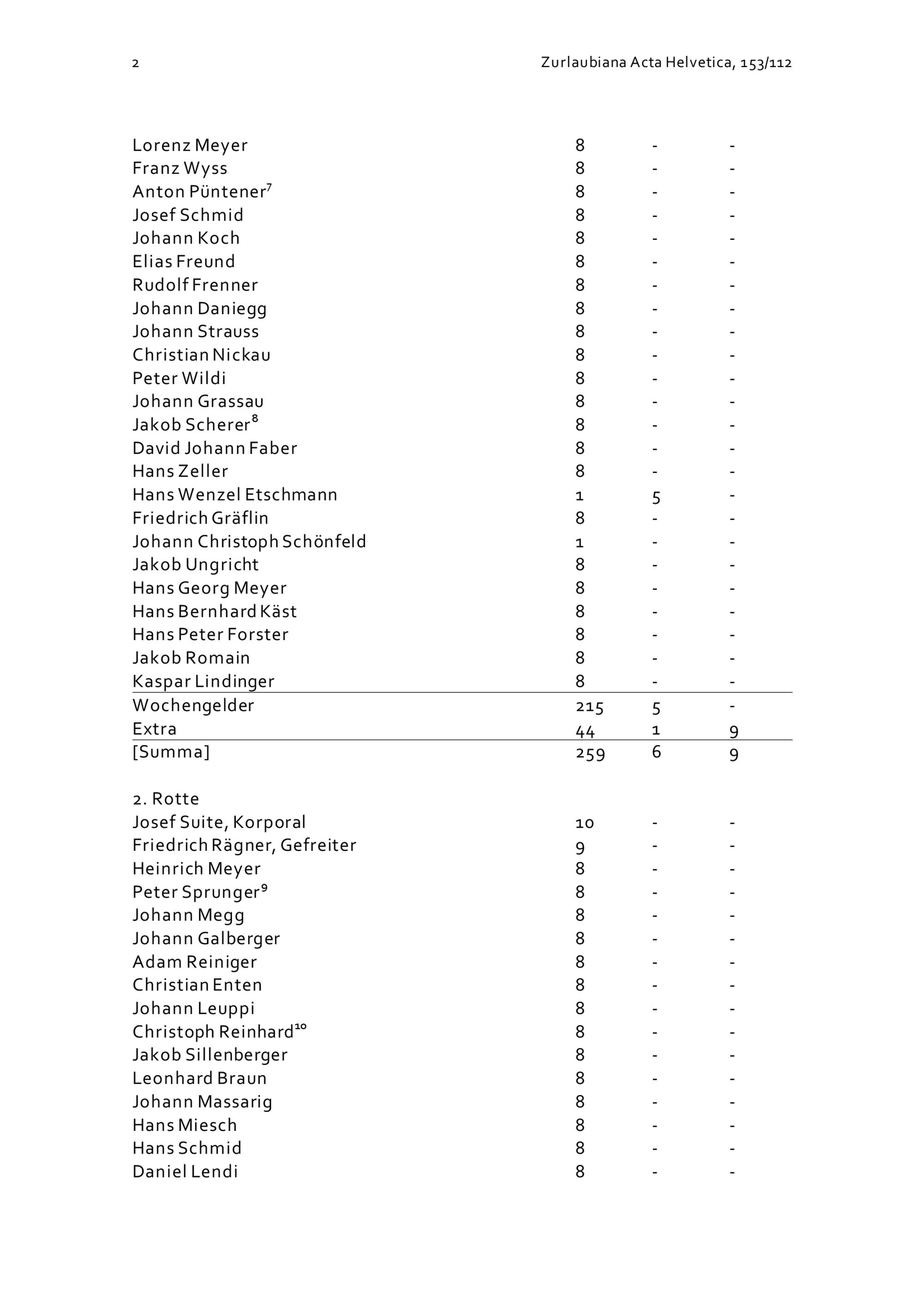 Mannschaftsrodel der Kompanie Zurlauben im Regiment Pfyffer vom Januar 1704