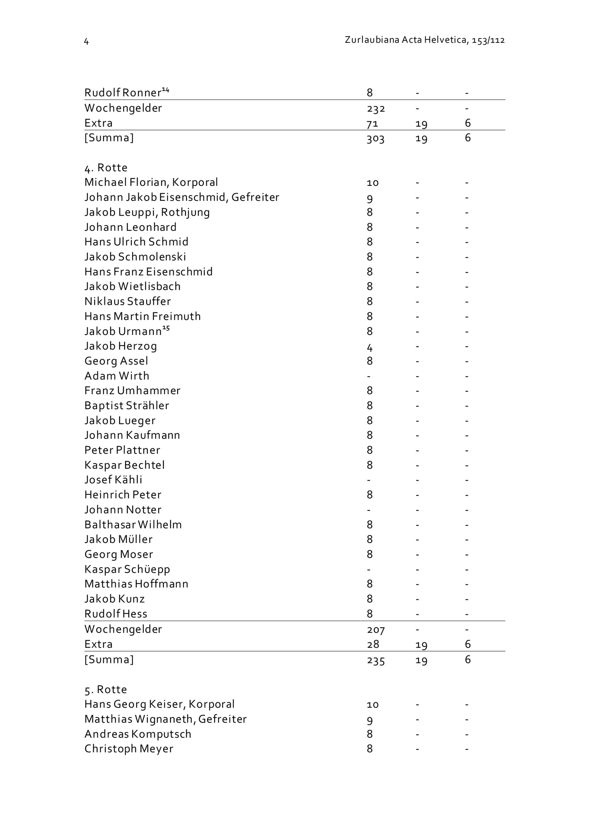 Mannschaftsrodel der Kompanie Zurlauben im Regiment Pfyffer vom Januar 1704