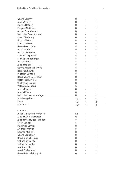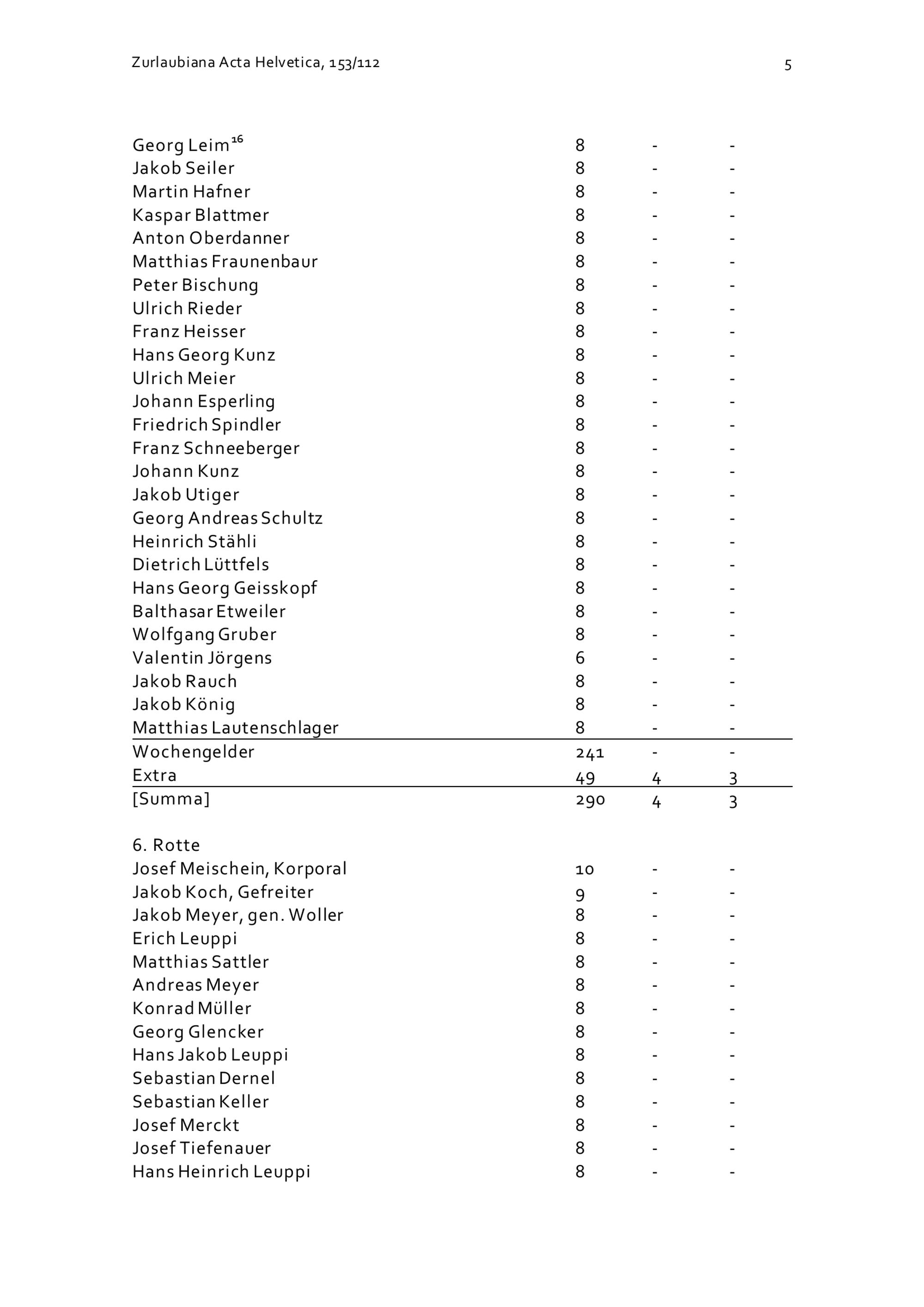 Mannschaftsrodel der Kompanie Zurlauben im Regiment Pfyffer vom Januar 1704