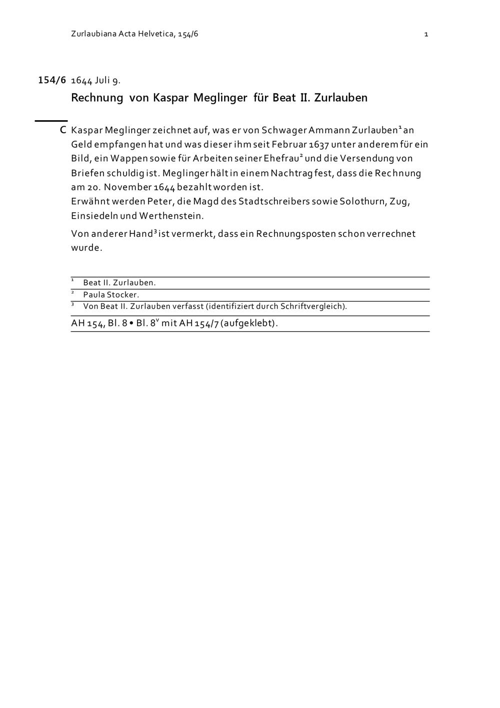 Acta Helvetica, Band 154