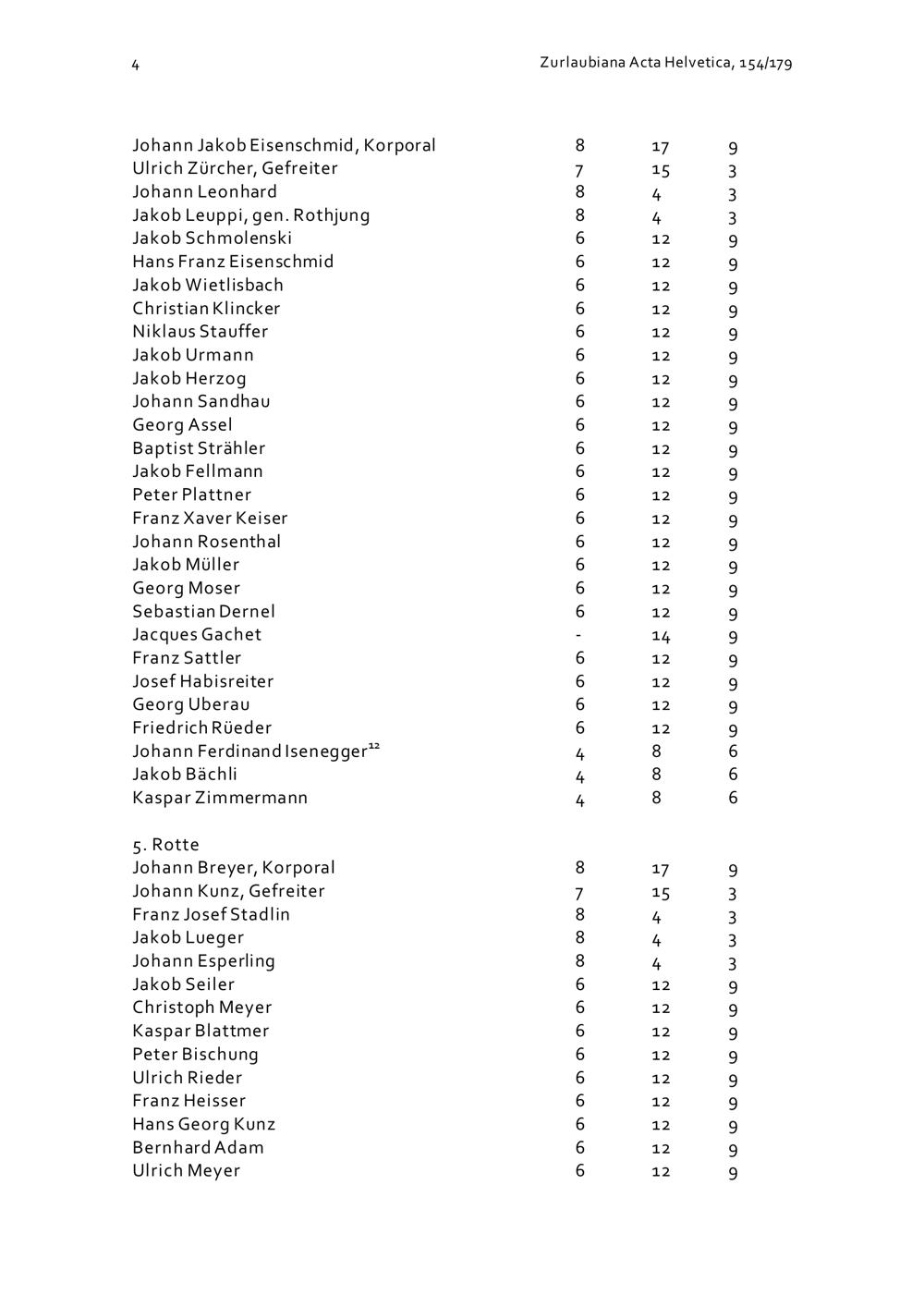 Mannschaftsrodel der Kompanie Zurlauben im Regiment Pfyffer vom Januar 1705
