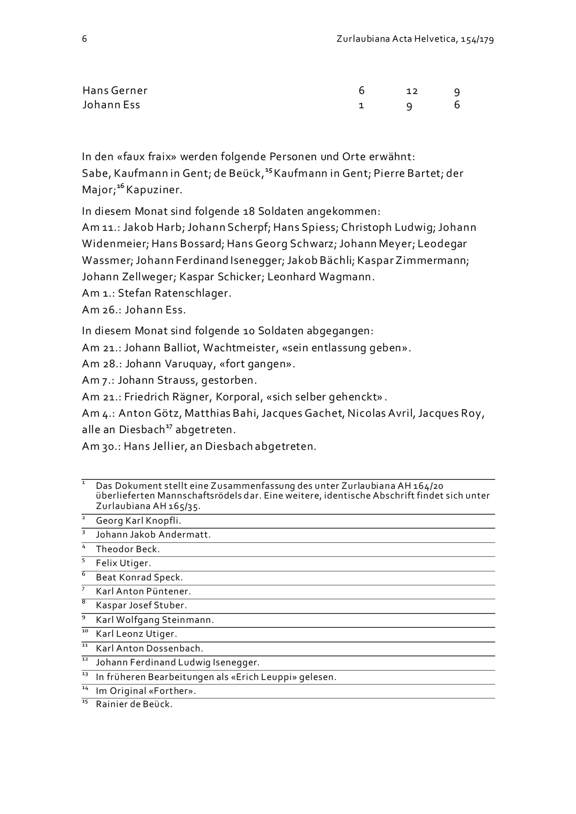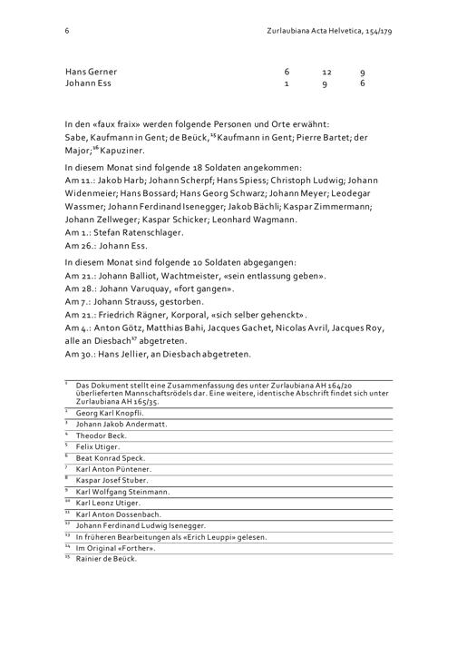 Mannschaftsrodel der Kompanie Zurlauben im Regiment Pfyffer vom Januar 1705