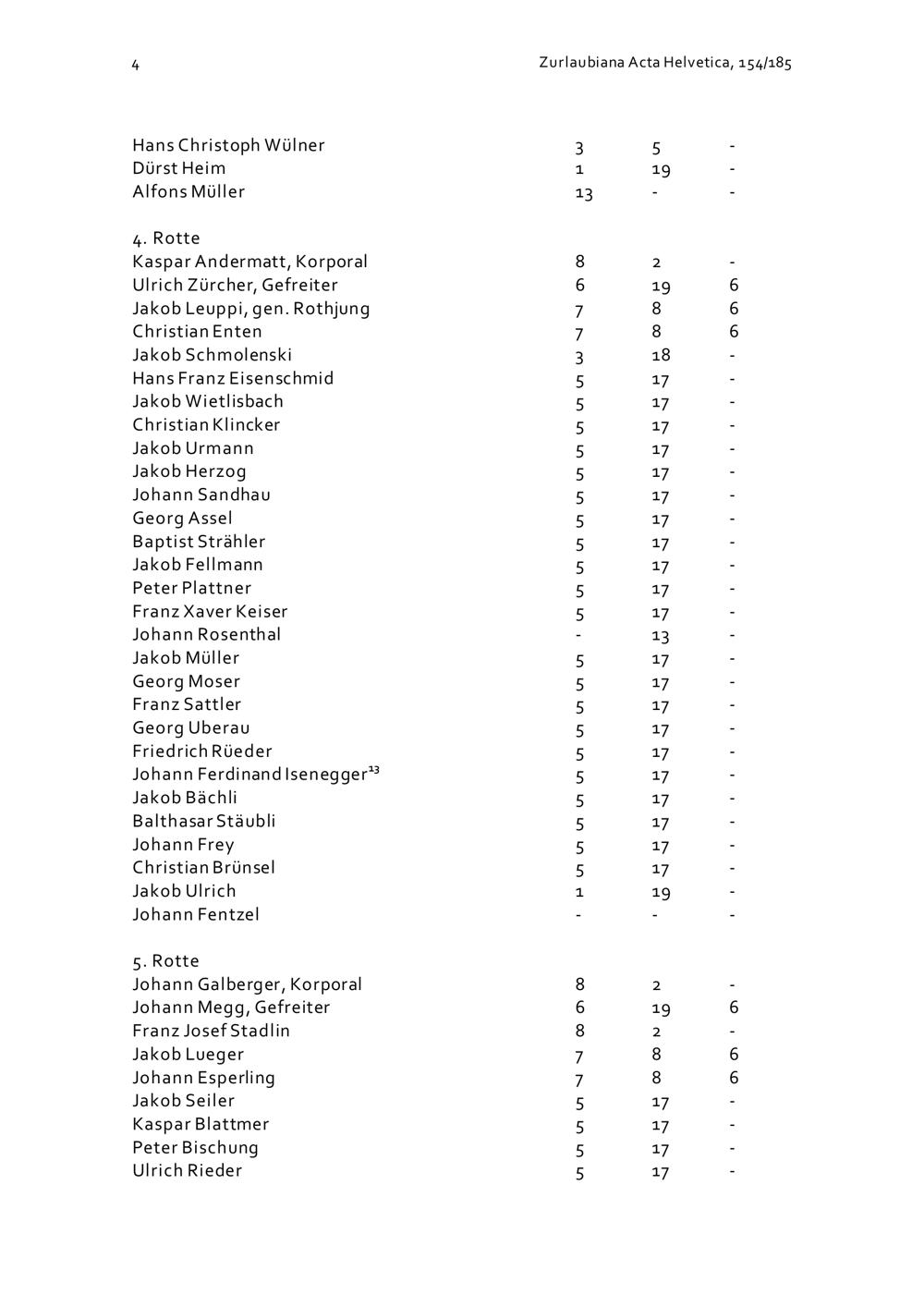 Mannschaftsrodel der Kompanie Zurlauben im Regiment Pfyffer vom Juli 1705