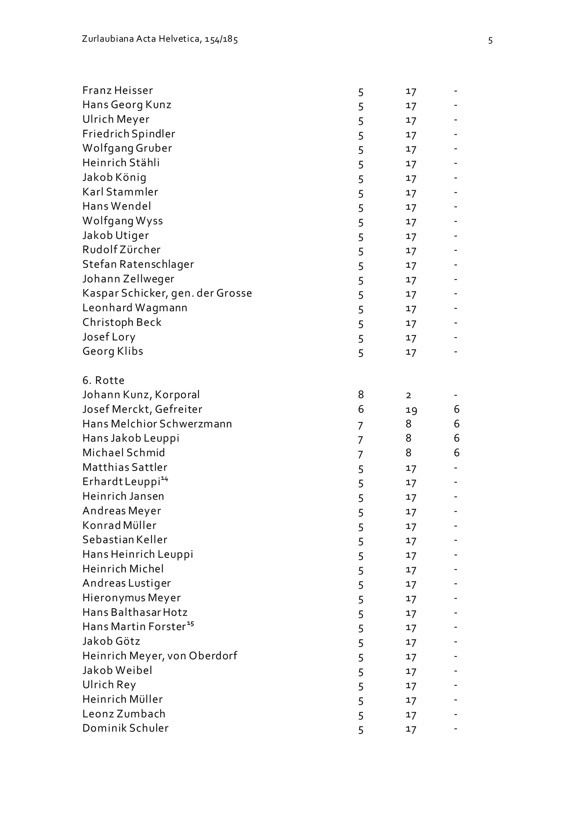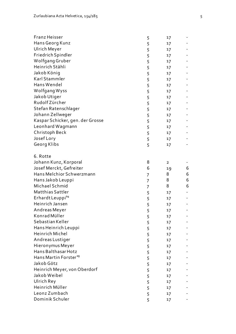 Mannschaftsrodel der Kompanie Zurlauben im Regiment Pfyffer vom Juli 1705
