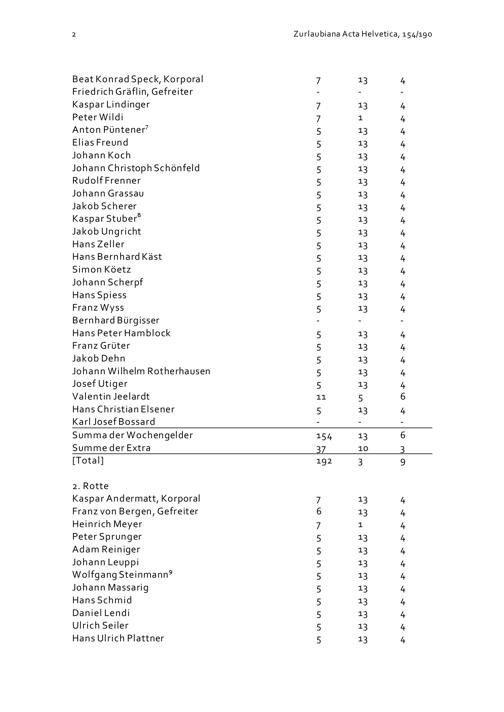 Mannschaftsrodel der Kompanie Zurlauben im Regiment Pfyffer vom Dezember 1705