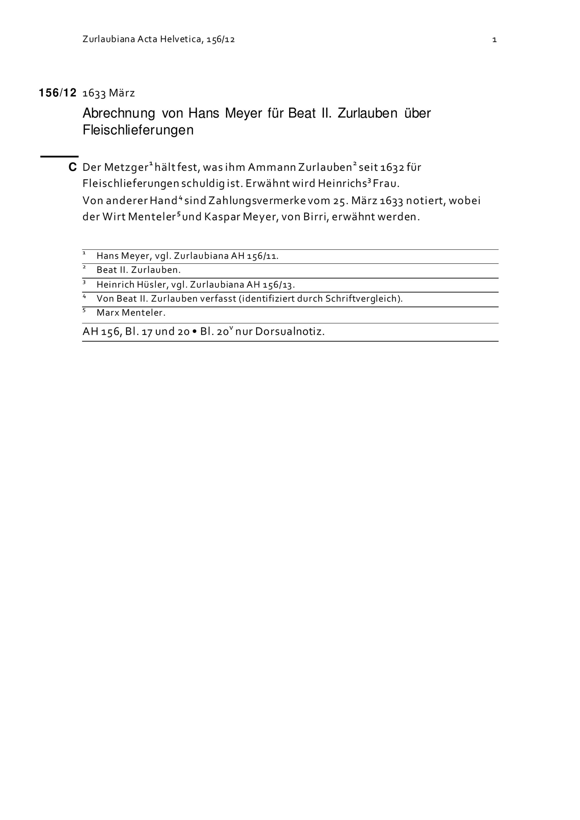 Abrechnung von Hans Meyer für Beat II. Zurlauben über Fleischlieferungen