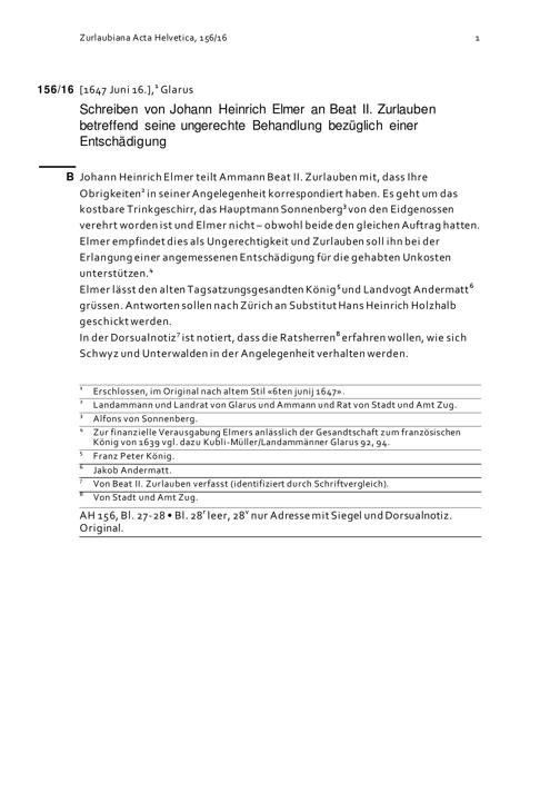 Schreiben von Johann Heinrich Elmer an Beat II. Zurlauben betreffend seine ungerechte...