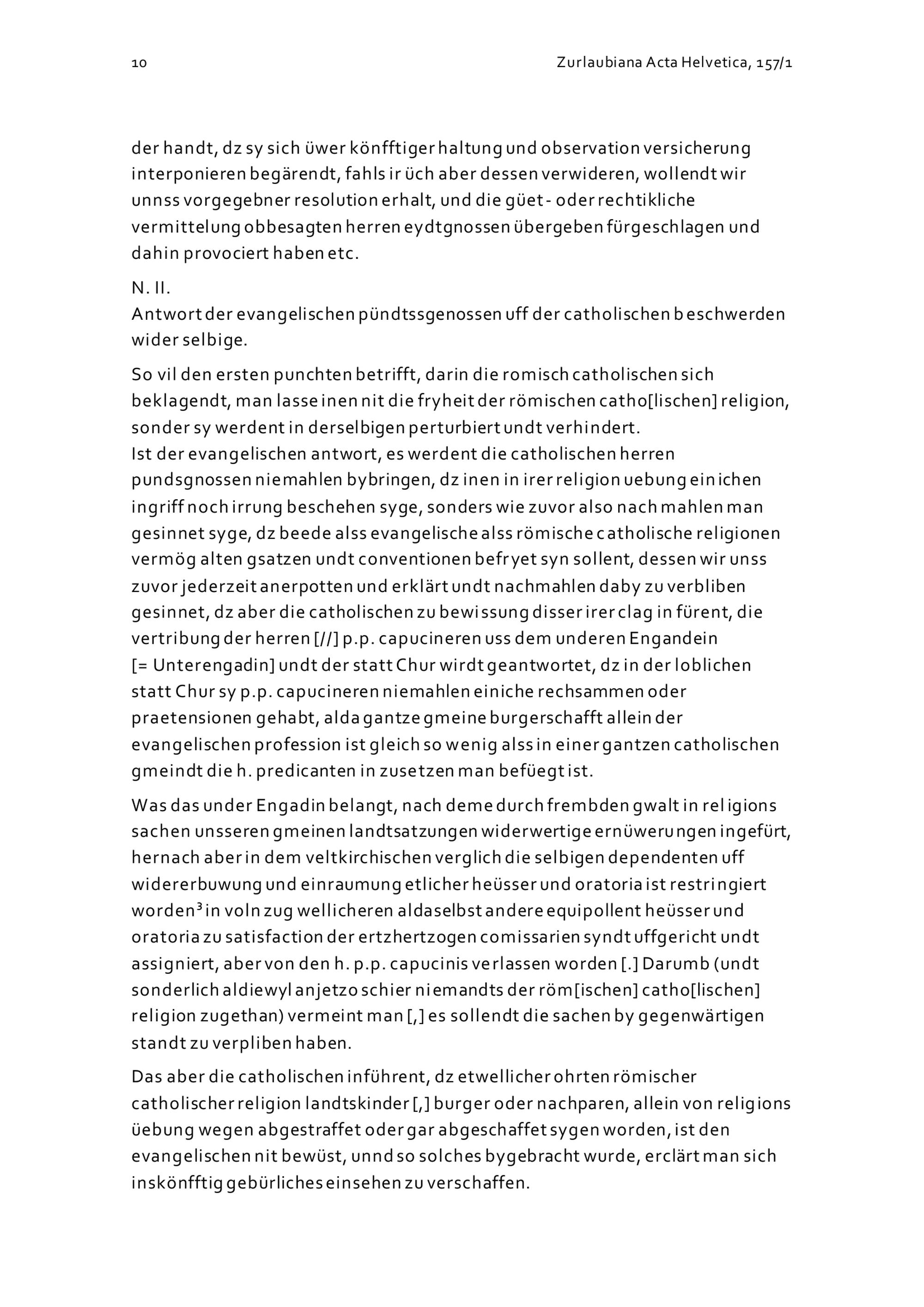 Abschied der Konferenz der Sechs Eidgenössischen Orte Zürich, Bern, Luzern, Uri, Schwyz und Neugläubig Glarus vom 5. bis 13. April 1644 in Chur zur Vermittlung in den Bündner Wirren, samt folgenden Beilagen: Beschwerden der Katholiken gegen die Protestanten, Replik der Protestanten darauf, Beschwerden der Protestanten gegen die Katholiken, Beschwerden gegen die Kapuziner, Verzeichnis der für die Beilegung der Auseinandersetzung wichtigen Dokumente und Urkunden