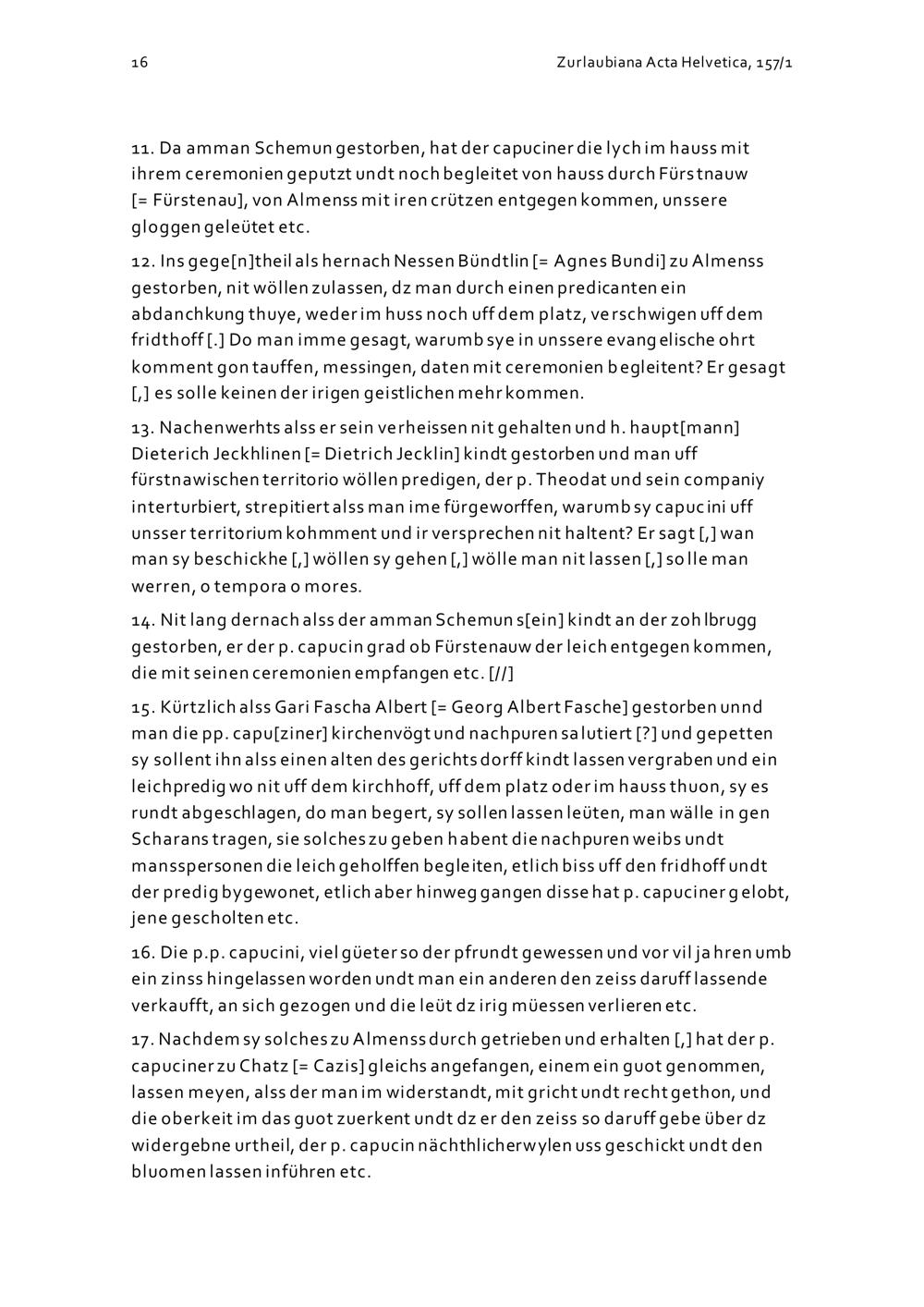 Abschied der Konferenz der Sechs Eidgenössischen Orte Zürich, Bern, Luzern, Uri, Schwyz und Neugläubig Glarus vom 5. bis 13. April 1644 in Chur zur Vermittlung in den Bündner Wirren, samt folgenden Beilagen: Beschwerden der Katholiken gegen die Protestanten, Replik der Protestanten darauf, Beschwerden der Protestanten gegen die Katholiken, Beschwerden gegen die Kapuziner, Verzeichnis der für die Beilegung der Auseinandersetzung wichtigen Dokumente und Urkunden