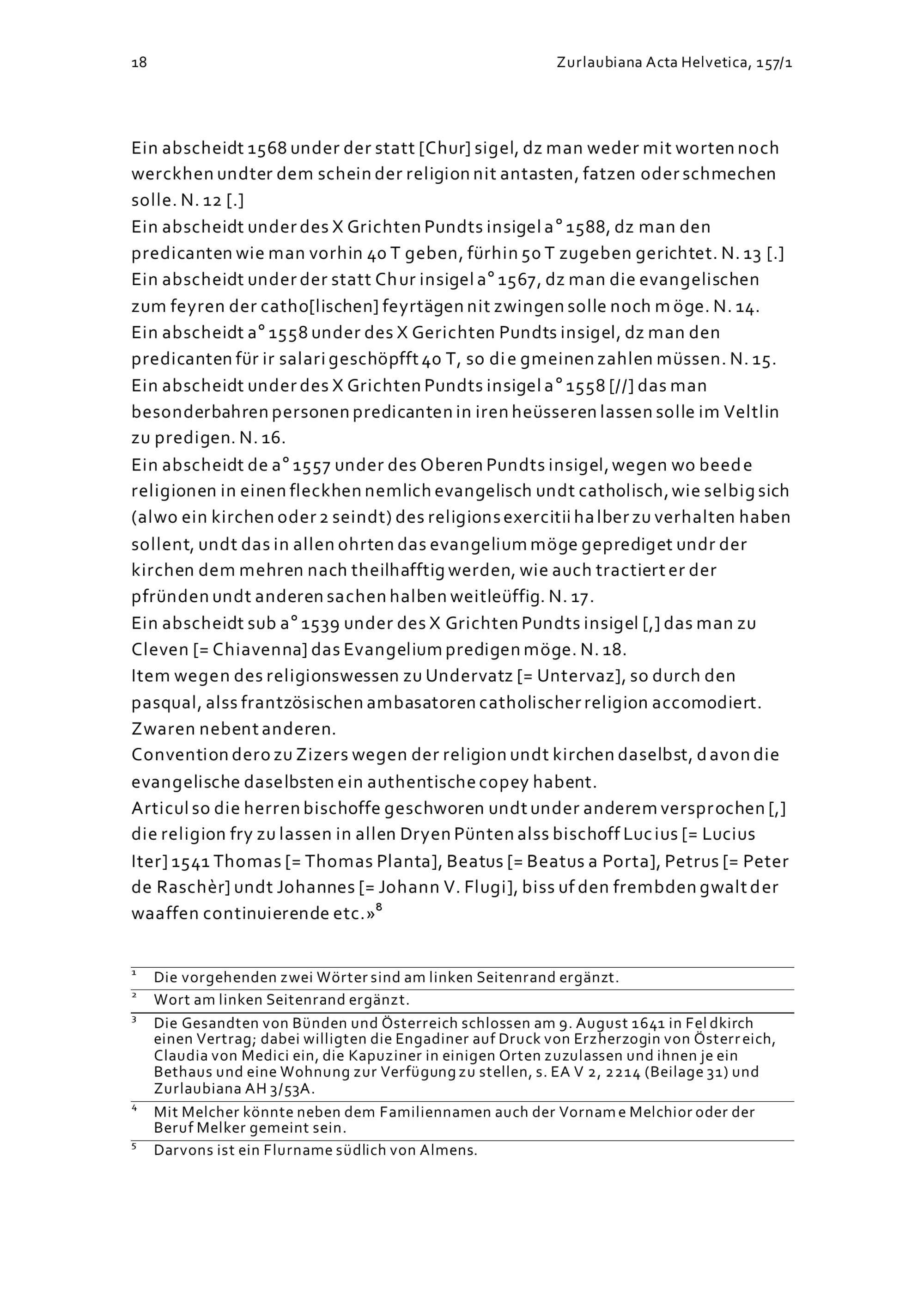 Abschied der Konferenz der Sechs Eidgenössischen Orte Zürich, Bern, Luzern, Uri, Schwyz und Neugläubig Glarus vom 5. bis 13. April 1644 in Chur zur Vermittlung in den Bündner Wirren, samt folgenden Beilagen: Beschwerden der Katholiken gegen die Protestanten, Replik der Protestanten darauf, Beschwerden der Protestanten gegen die Katholiken, Beschwerden gegen die Kapuziner, Verzeichnis der für die Beilegung der Auseinandersetzung wichtigen Dokumente und Urkunden