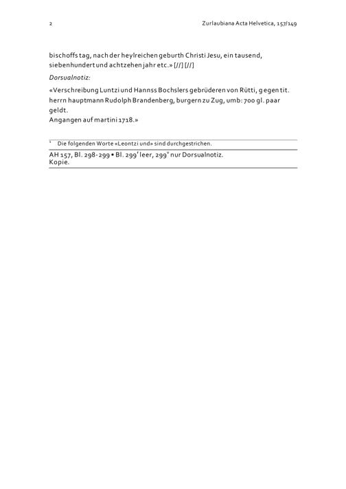 Schuldbrief über 700 Gulden, die Hans Bochsler, von Oberrüti, dem Zuger Hptm. Rudolf Brandenberg schuldet