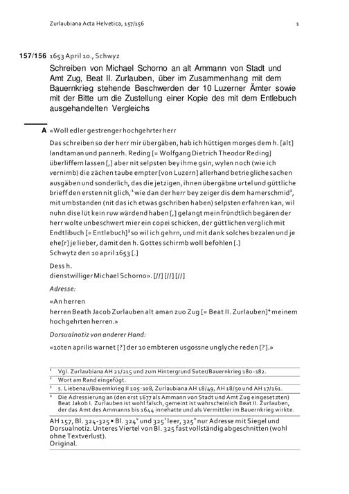 Schreiben von Michael Schorno an Altammann von Stadt und Amt Zug, Beat II. Zurlauben, über in Zusammenhang mit dem Bauernkrieg stehende Beschwerden der 10 Luzerner Ämter sowie mit der Bitte um die Zustellung einer Kopie des mit dem Entlebuch ausgehandelten Vergleichs