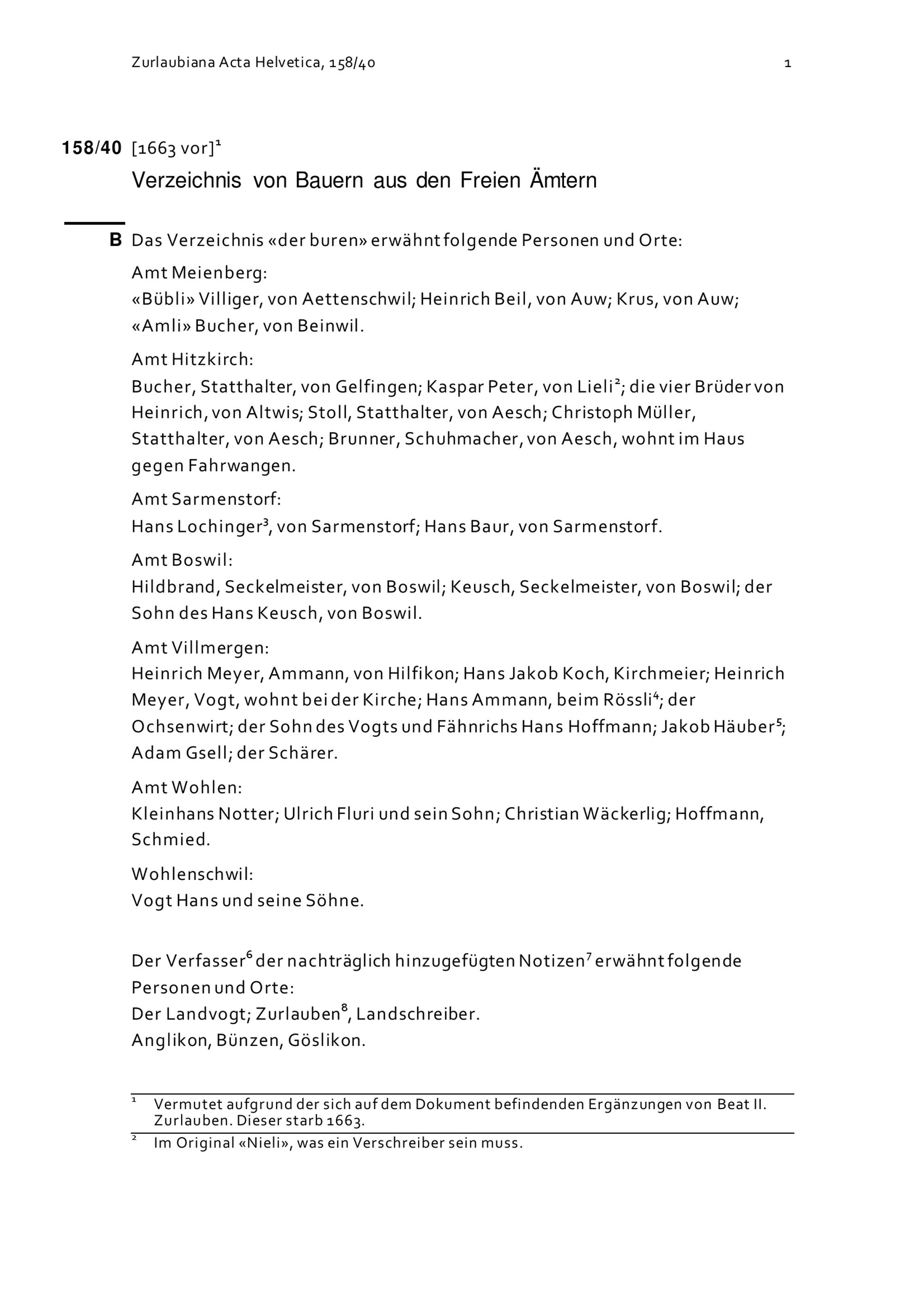 Verzeichnis von Bauern aus den Freien Ämter