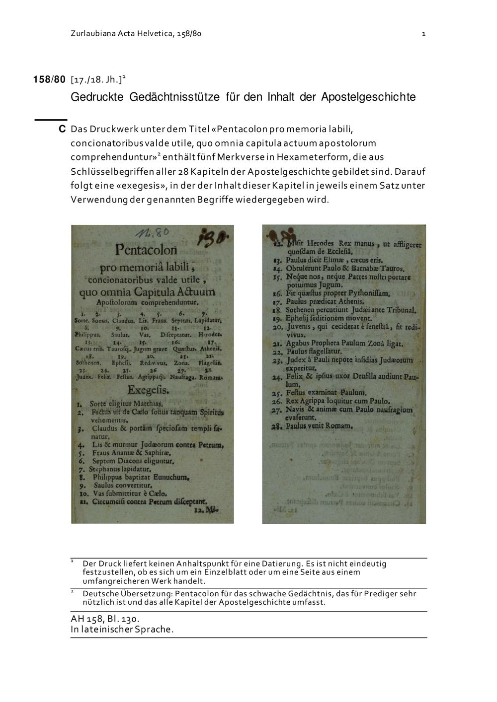 Acta Helvetica, Band 158