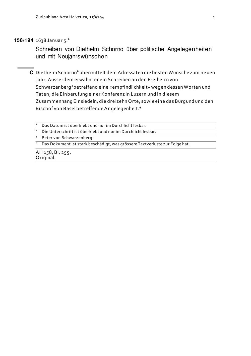 Acta Helvetica, Band 158