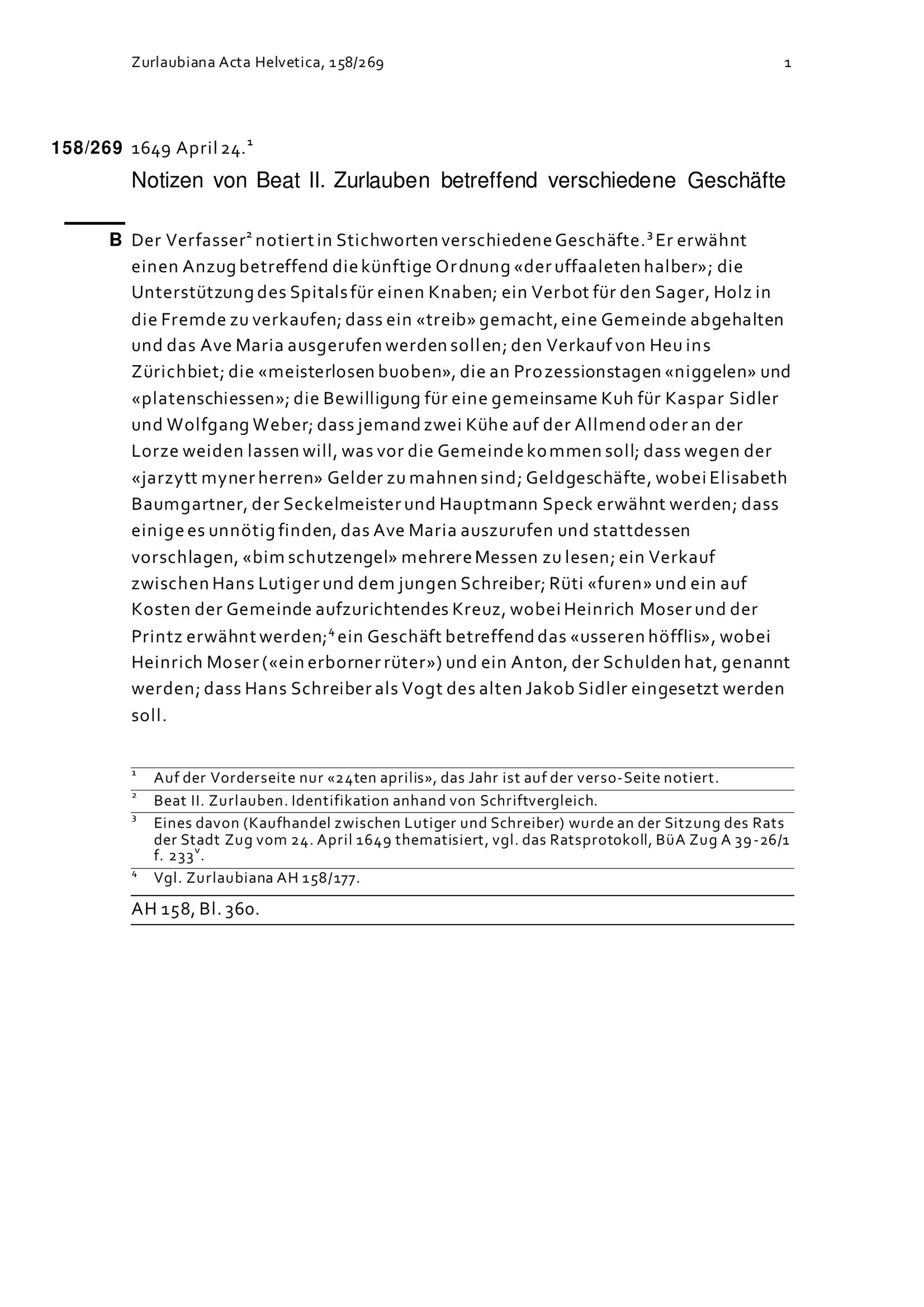 Notiz von Beat II. Zurlauben betreffend verschiedene Geschäfte