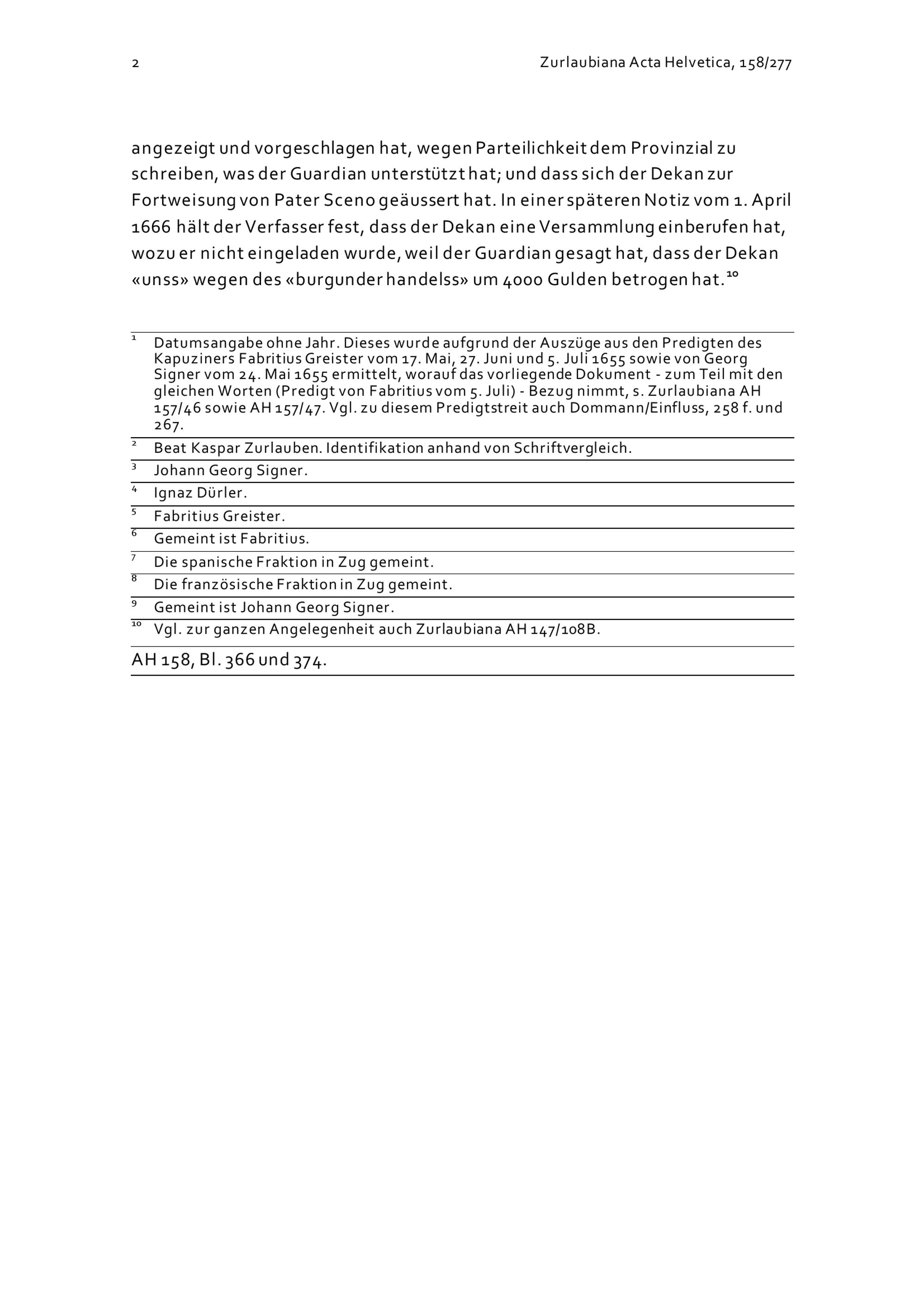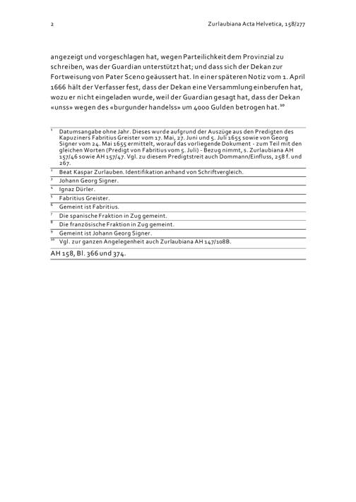 Notiz von Beat Kaspar Zurlauben zur Besprechung zwischen dem Dekan Johann Georg Signer und Guardian Ignaz Dürler betreffend strittige Predigten von Signer und Pater Fabritius Greister über das Praktizieren