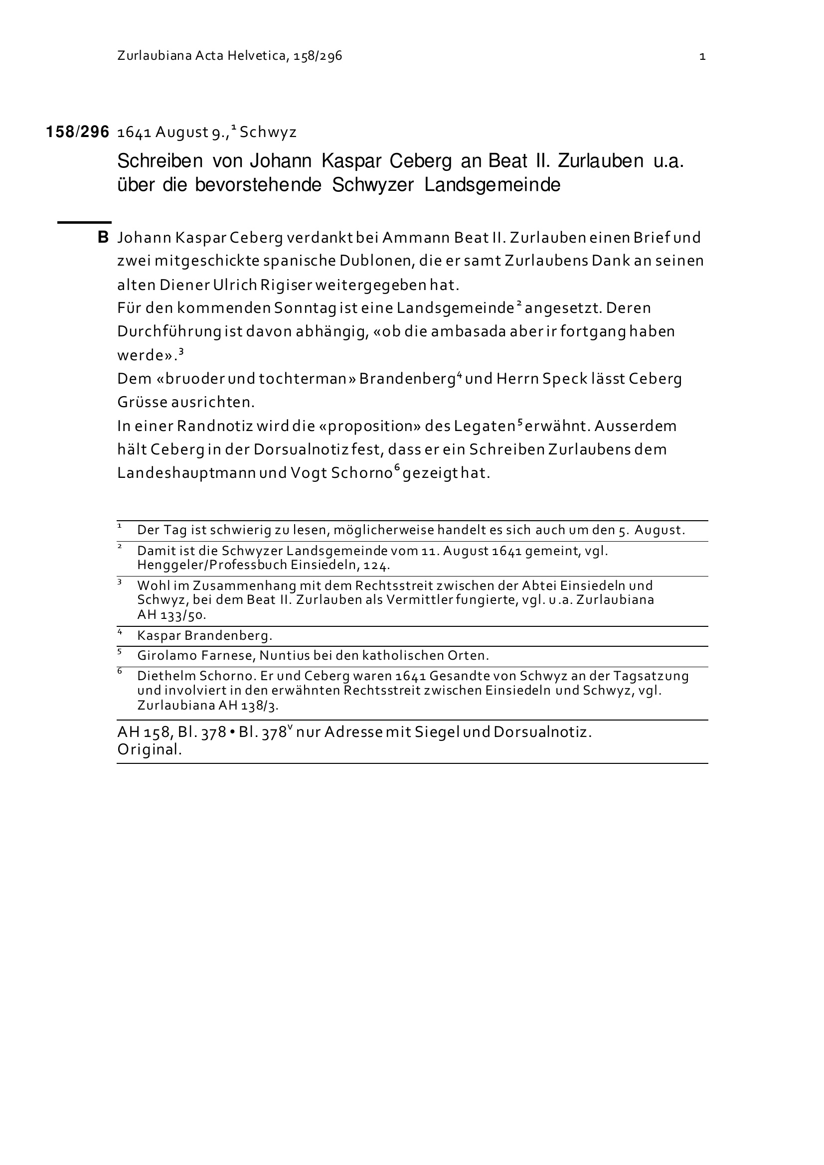 Acta Helvetica, Band 158