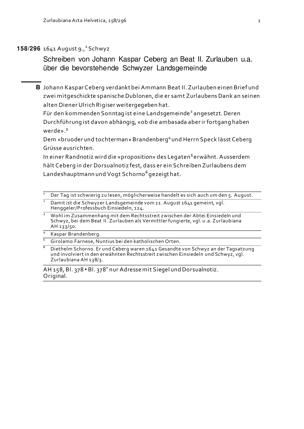 Schreiben von Johann Kaspar Ceberg an Beat II. Zurlauben u.a. über die bevorstehende Schwyzer Landsgemeinde