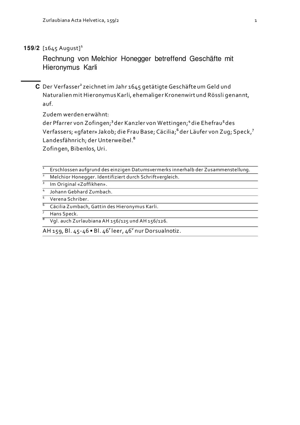 Rechnung von Melchior Honegger betreffend Geschäfte mit Hieronymus Karli