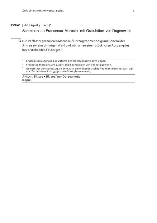 Schreiben an Francesco Morosini mit Gratulation zur Dogenwahl