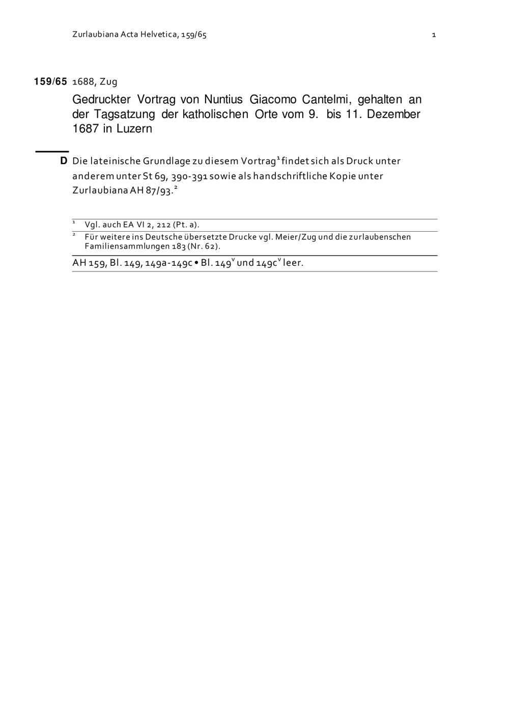 Druck: Vortrag von Giacomo Cantelmi, Nuntius, gehalten an der Tagsatzung der Katholischen Orte vom 9. bis 11. Dezember 1687 in Luzern