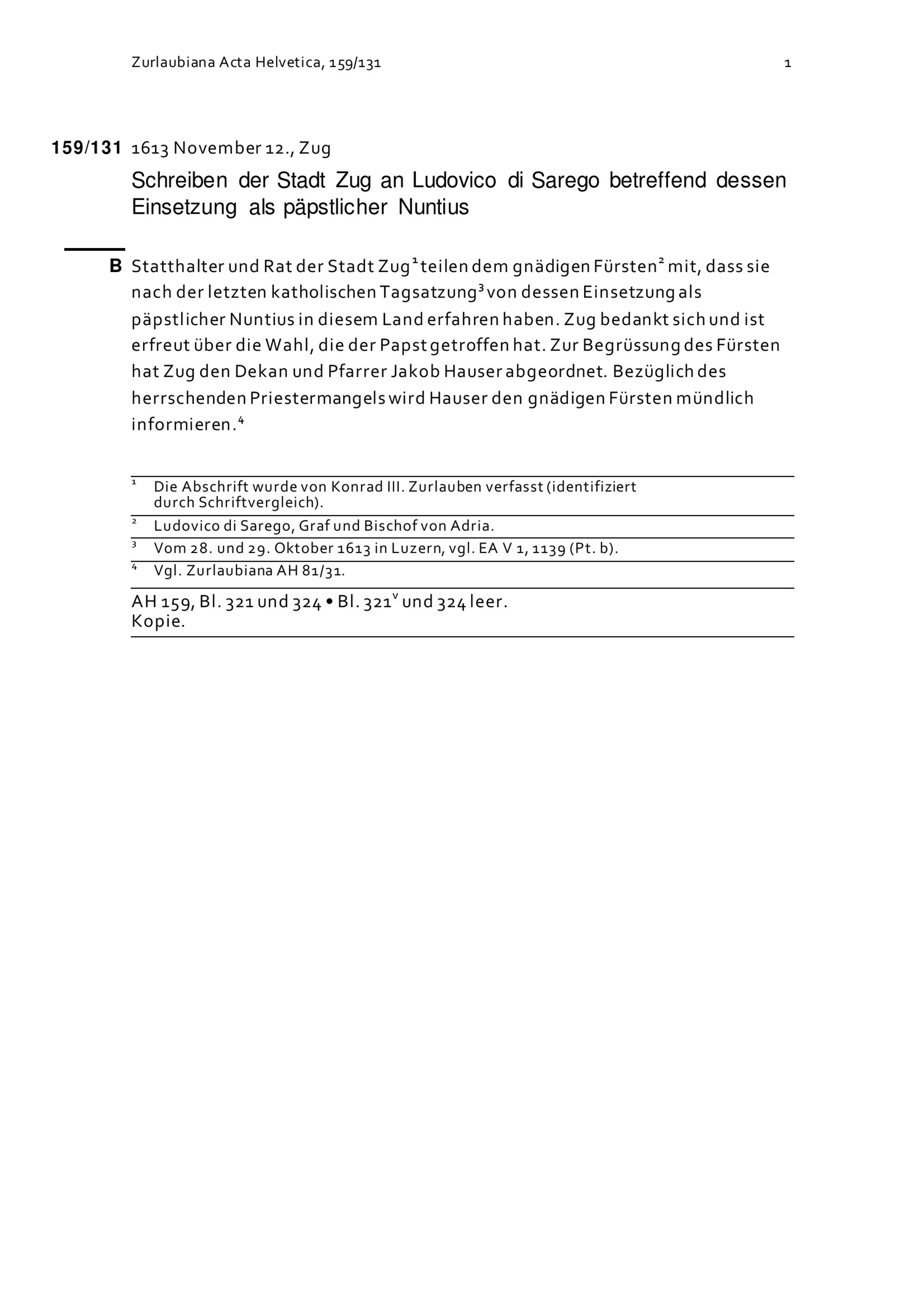 Schreiben der Stadt Zug an Ludovico di Sarego betreffend dessen Einsetzung als päpstlicher...