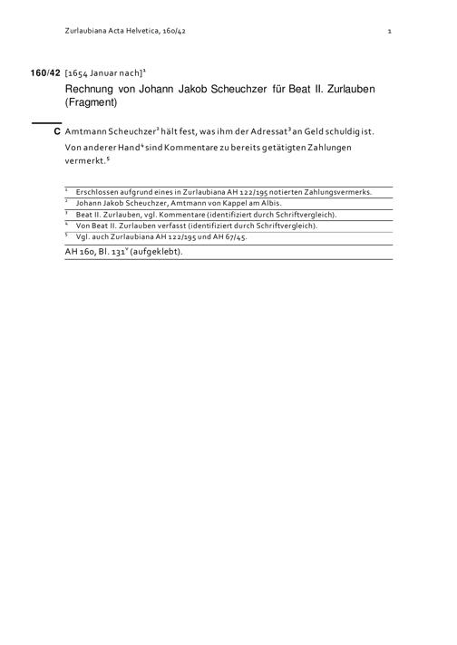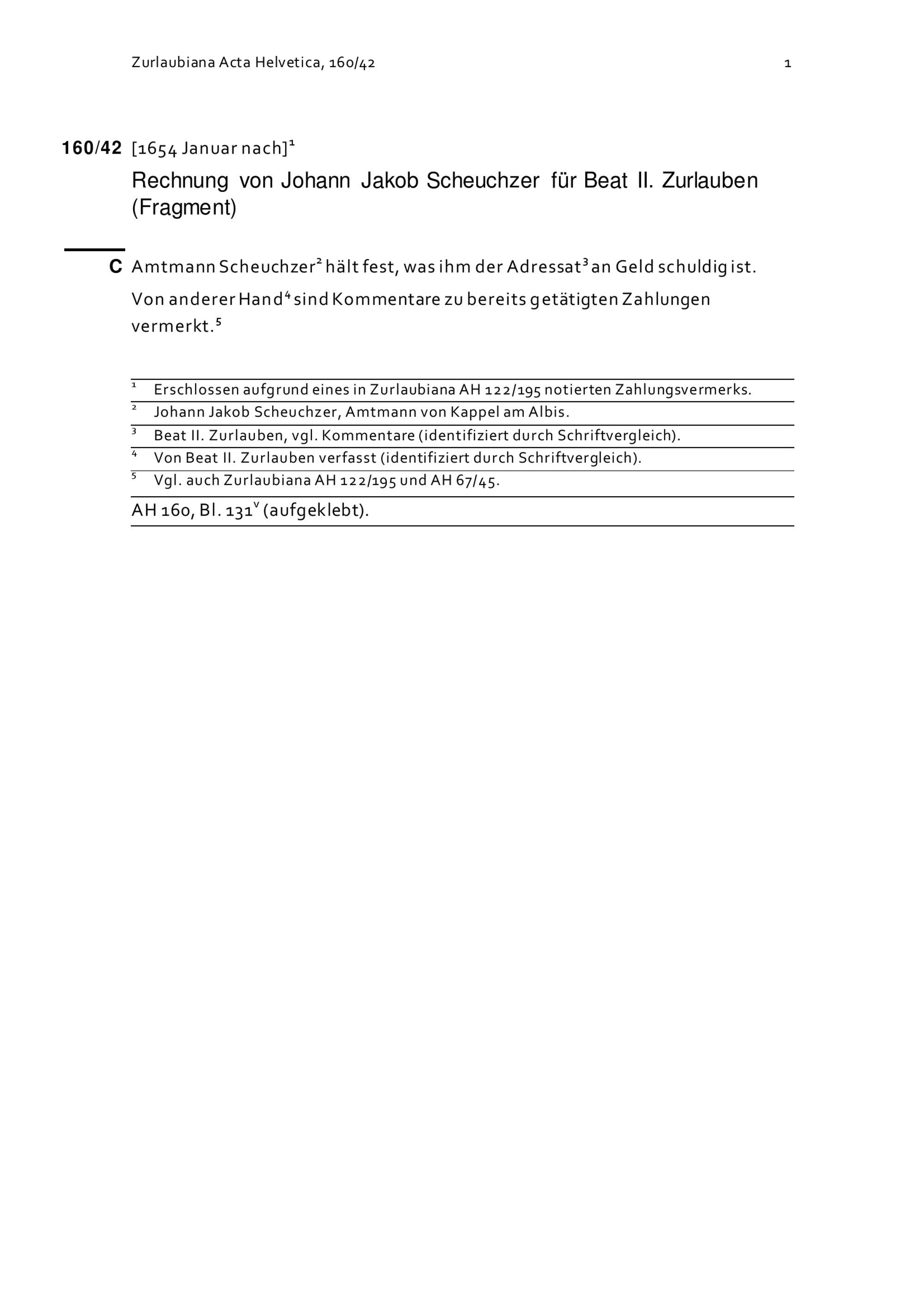 Rechnung von Johann Jakob Scheuchzer für Beat II. Zurlauben