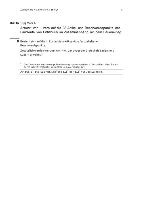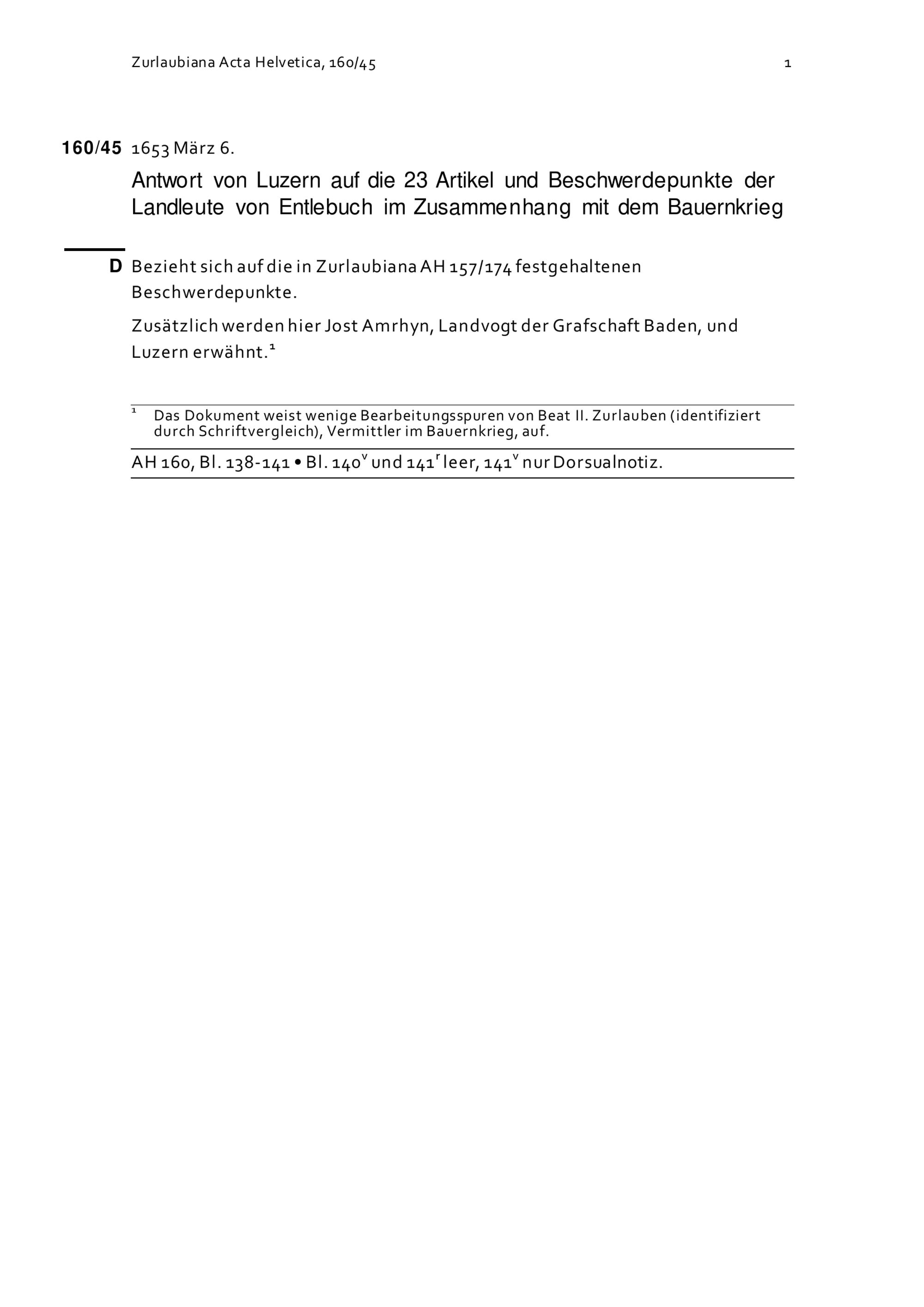 Antwort von Luzern auf die 23 Artikel und Beschwerdepunkte der Landleute von Entlebuch in Zusammenhang mit dem Bauernkrieg