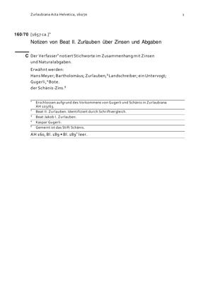 Notiz von Beat II. Zurlauben über Zinsen und Abgaben