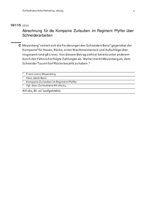 Abrechnung für die Kompanie Zurlauben im Regiment Pfyffer über Schneiderarbeiten