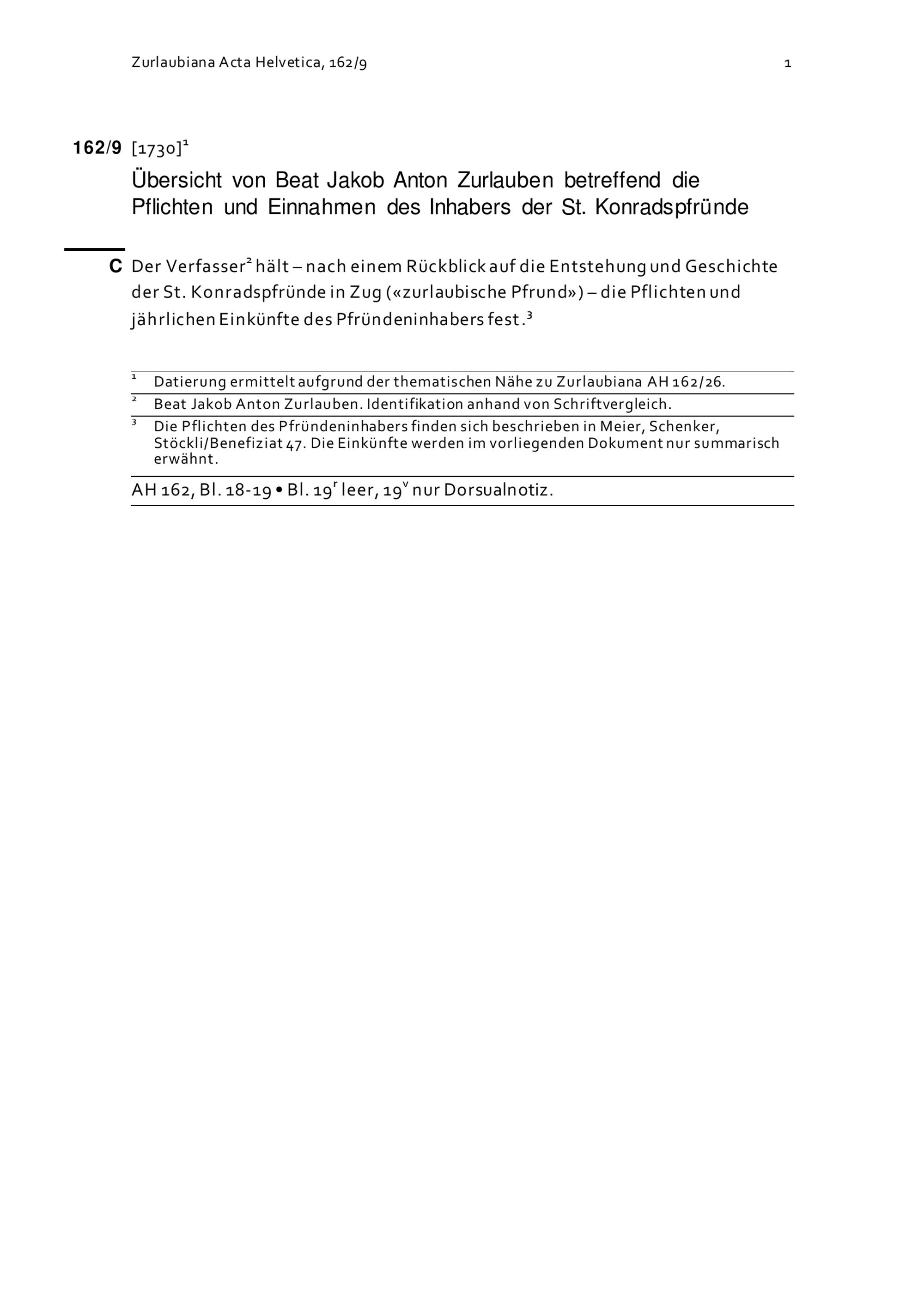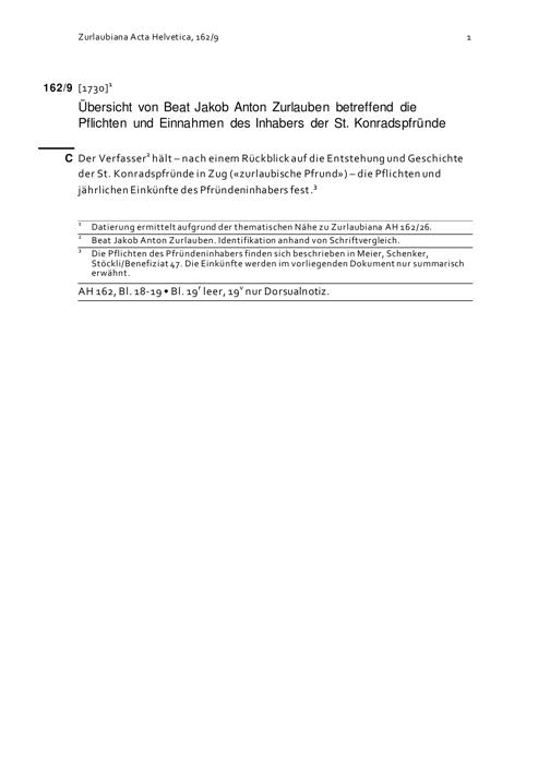 Übersicht von Beat Jakob Anton Zurlauben betreffend die Pflichten und Einnahmen des Inhabers der Sankt-Konradspfrund