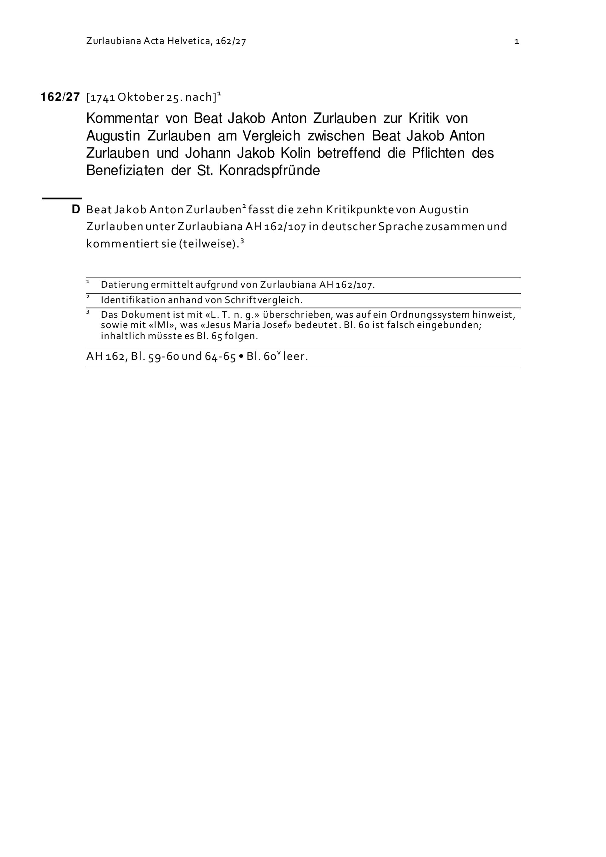 Kommentar von Beat Jakob Anton Zurlauben zur Kritik von Augustin Zurlauben am Vergleich zwischen Beat Jakob Anton Zurlauben und Johann Jakob Kolin betreffend die Pflichten des Benefiziaten der Sankt-Konradspfrund