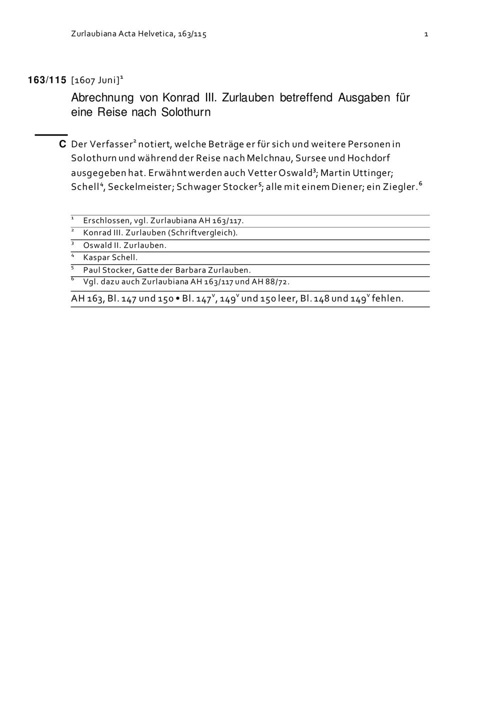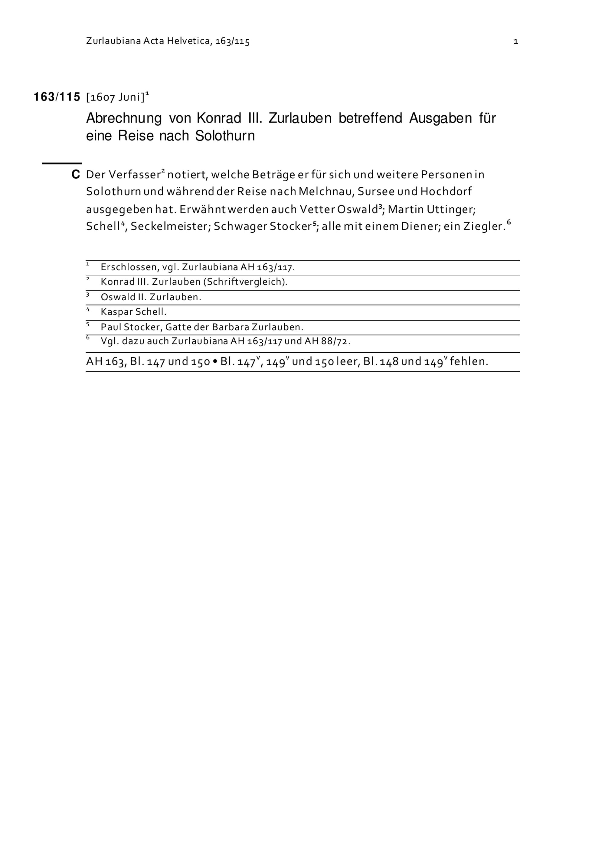 Abrechnung von Konrad III. Zurlauben betreffend Ausgaben für eine Reise nach Sol...