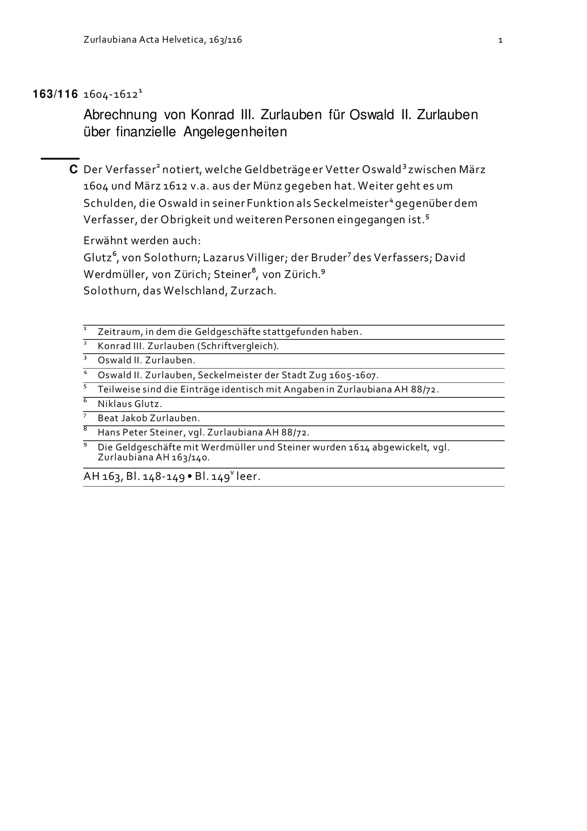 Abrechnung zwischen Konrad III. Zurlauben und Oswald II. Zurlauben