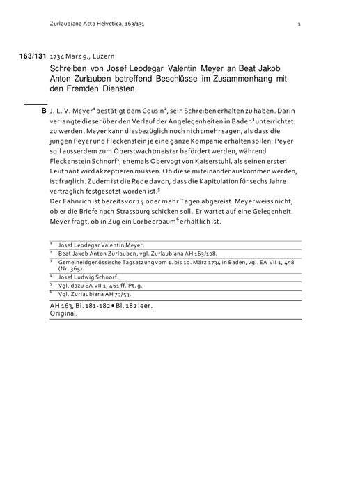 Schreiben von Josef Leodegar Valentin Meyer an Beat Jakob Anton Zurlauben betreffend...