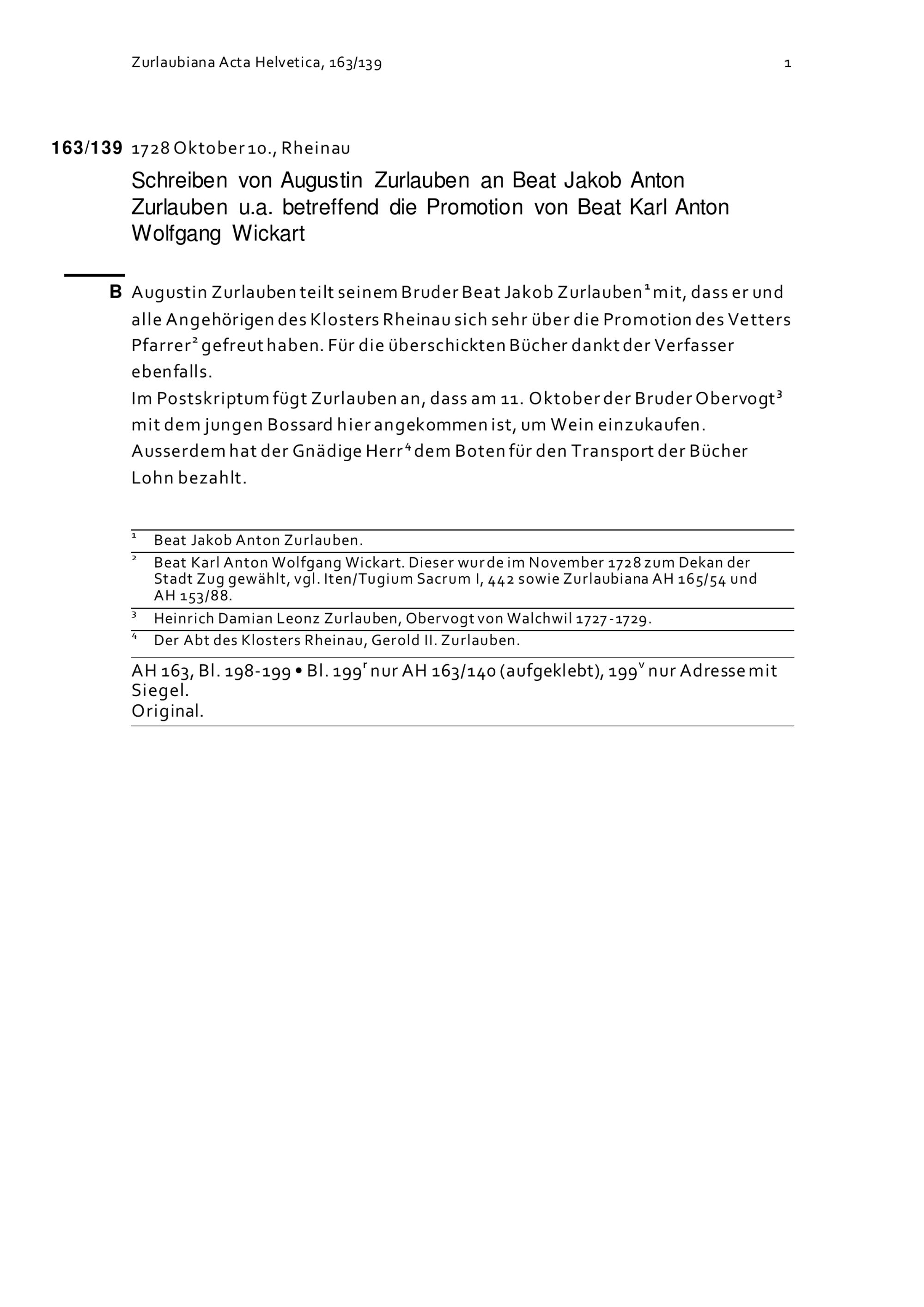 Schreiben von Augustin Zurlauben an Beat Jakob Anton Zurlauben u.a. betreffend die Promotion von Beat Karl Anton Wolfgang Wickart