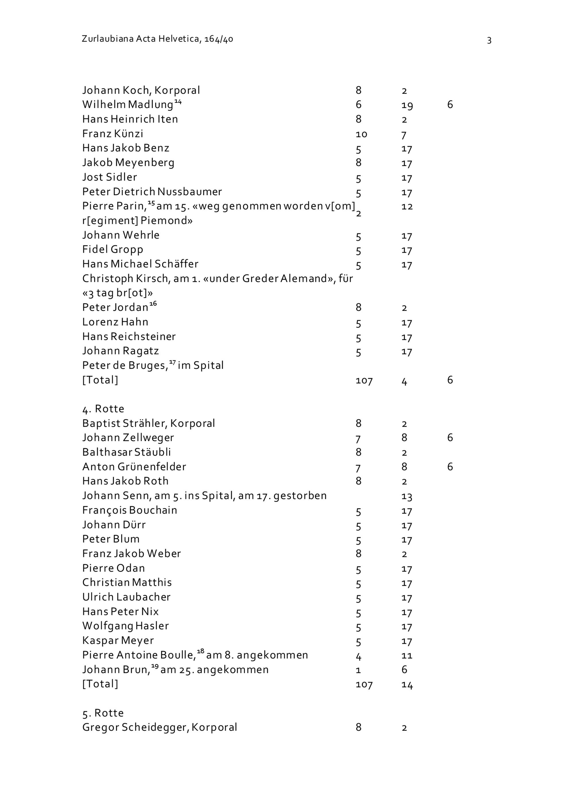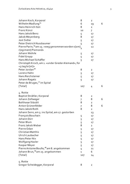 Mannschaftsrodel der Kompanie Zurlauben im Regiment Pfyffer vom Januar 1711
