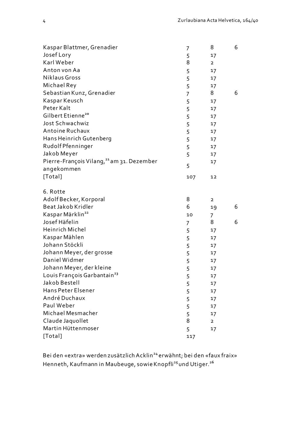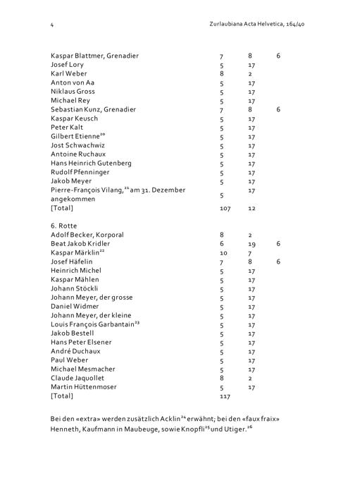Mannschaftsrodel der Kompanie Zurlauben im Regiment Pfyffer vom Januar 1711