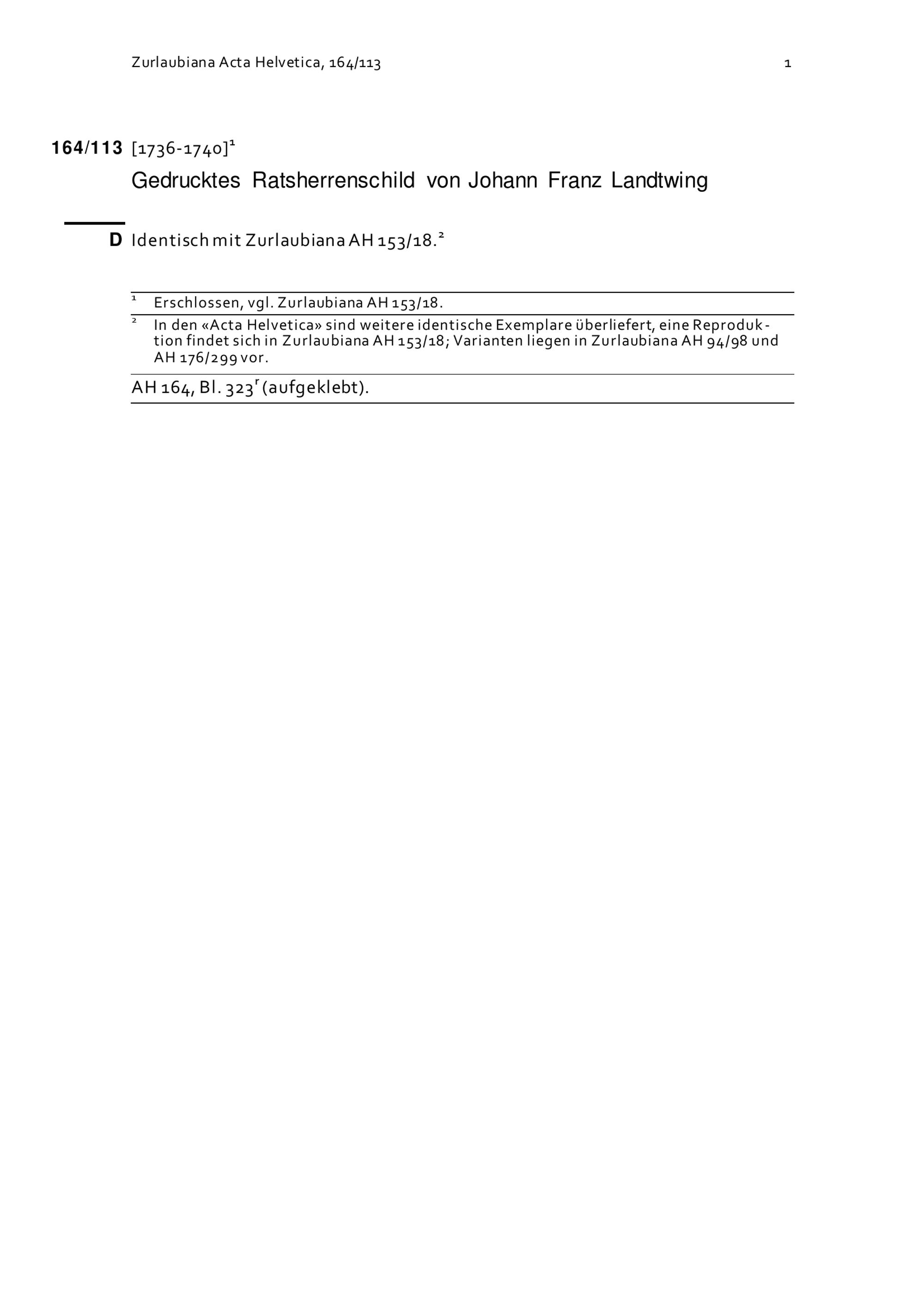 Acta Helvetica, Band 164