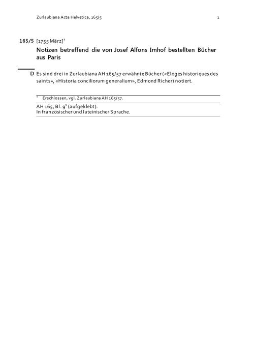Notiz betreffend die von Josef Alfons Imhof bestellten Bücher aus Paris