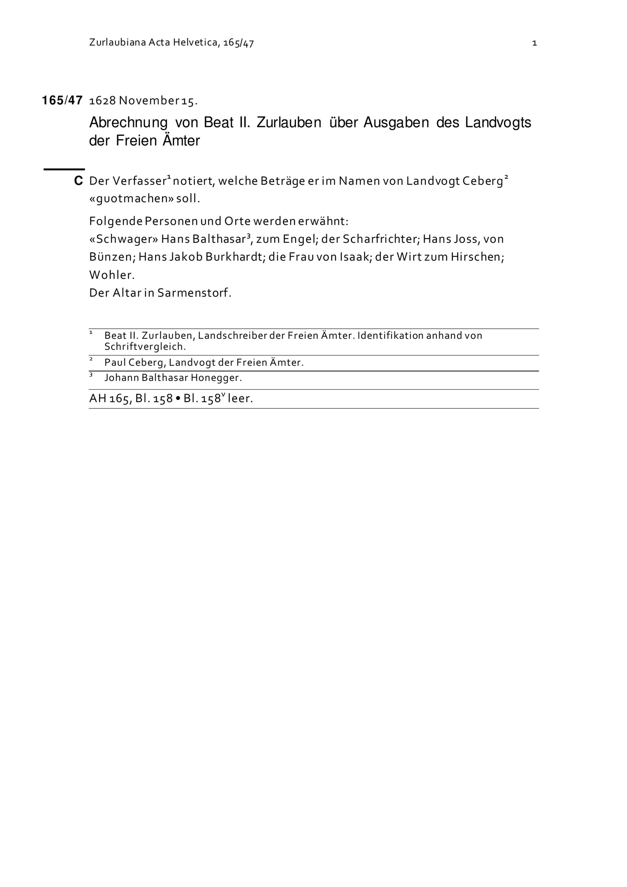 Acta Helvetica, Band 165