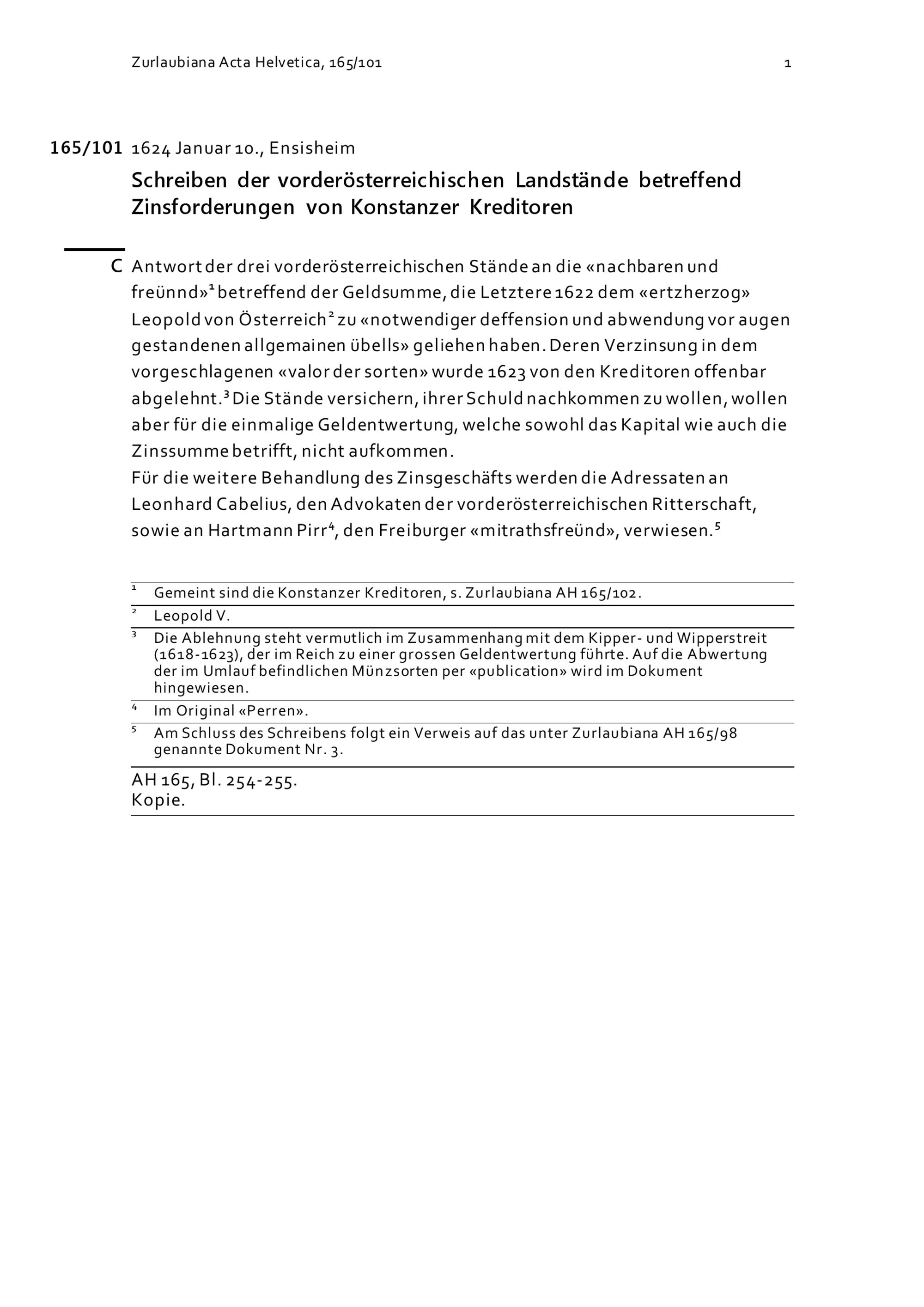 Schreiben der vorderösterreichischen Landstände betreffend Zinsforderungen von Konstanzer Kreditoren