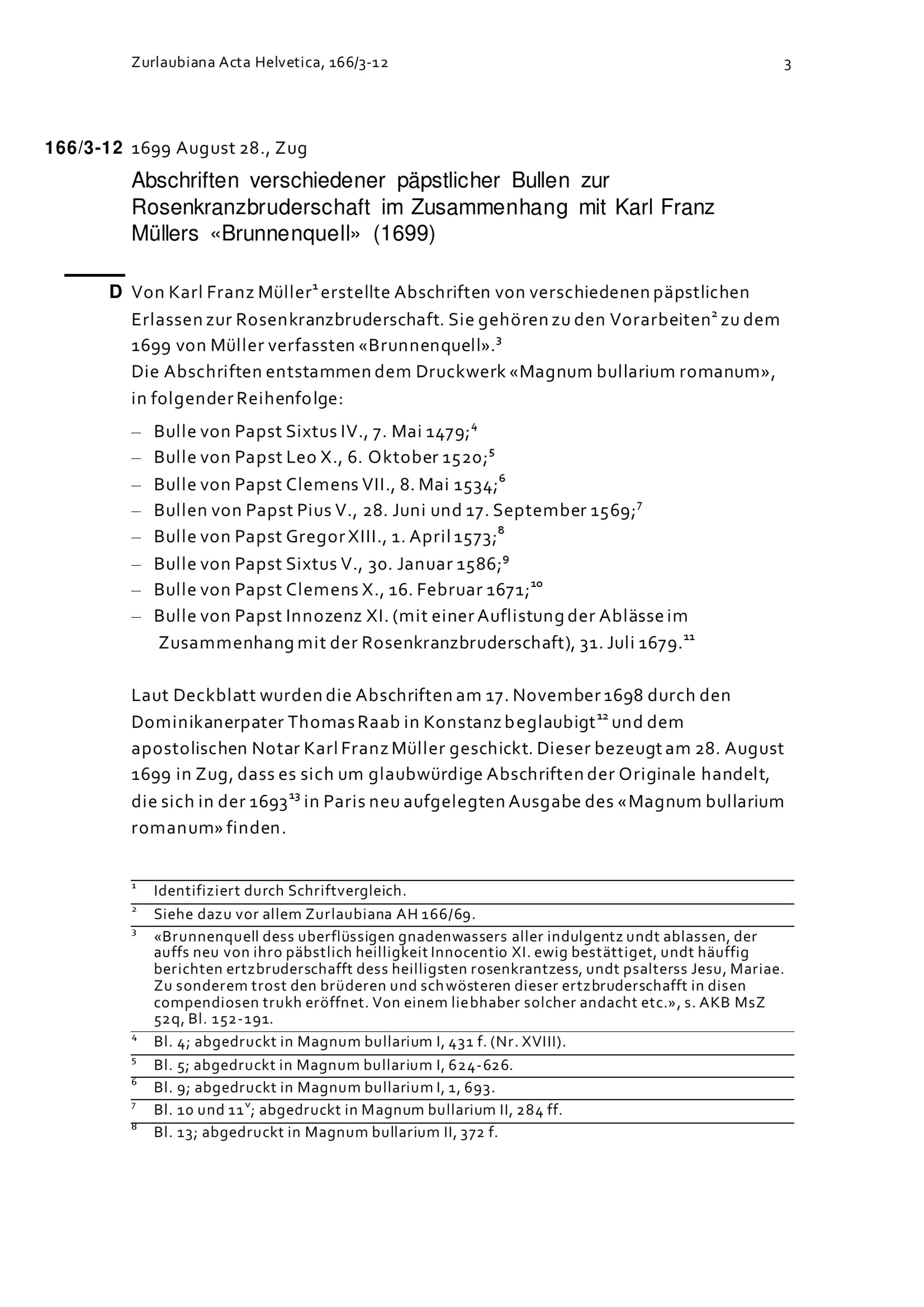 Abschriften verschiedener päpstlicher Bullen zur Rosenkranzbruderschaft in Zusammenhang mit Karl Franz Müllers «Brunnenquell»