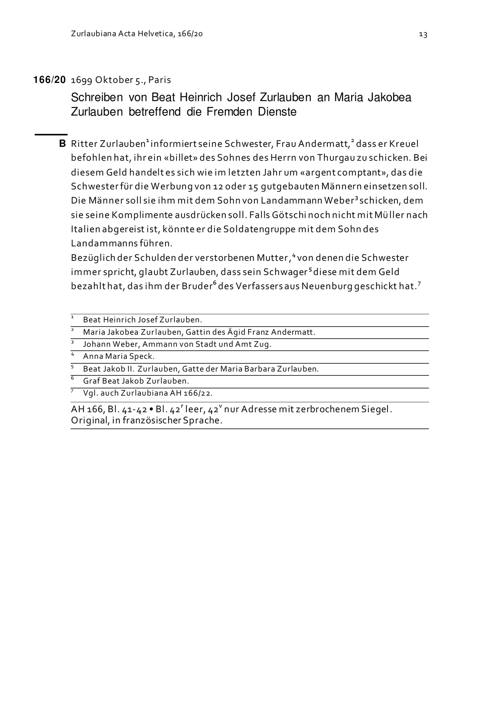 Schreiben von Beat Heinrich Josef Zurlauben an Maria Jakobea Zurlauben betreffend die Fremden Dienste