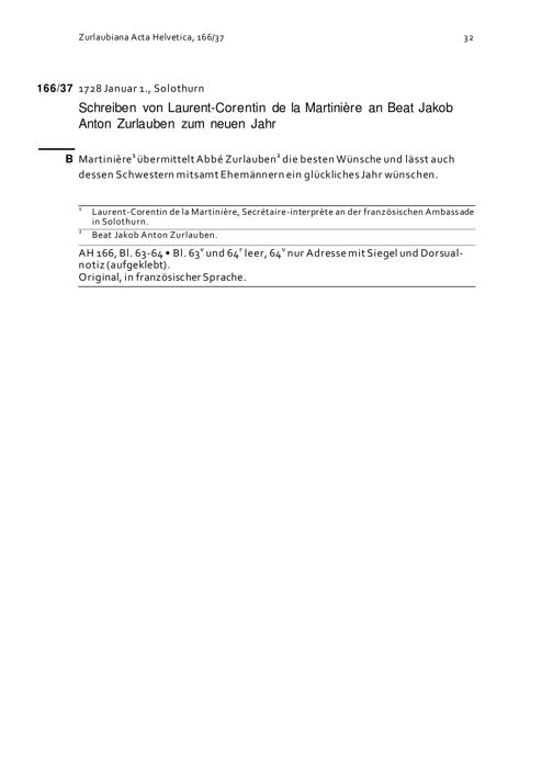 Schreiben von Laurent Corentin de la Martinière an Beat Jakob Anton Zurlauben zum neuen Jahr