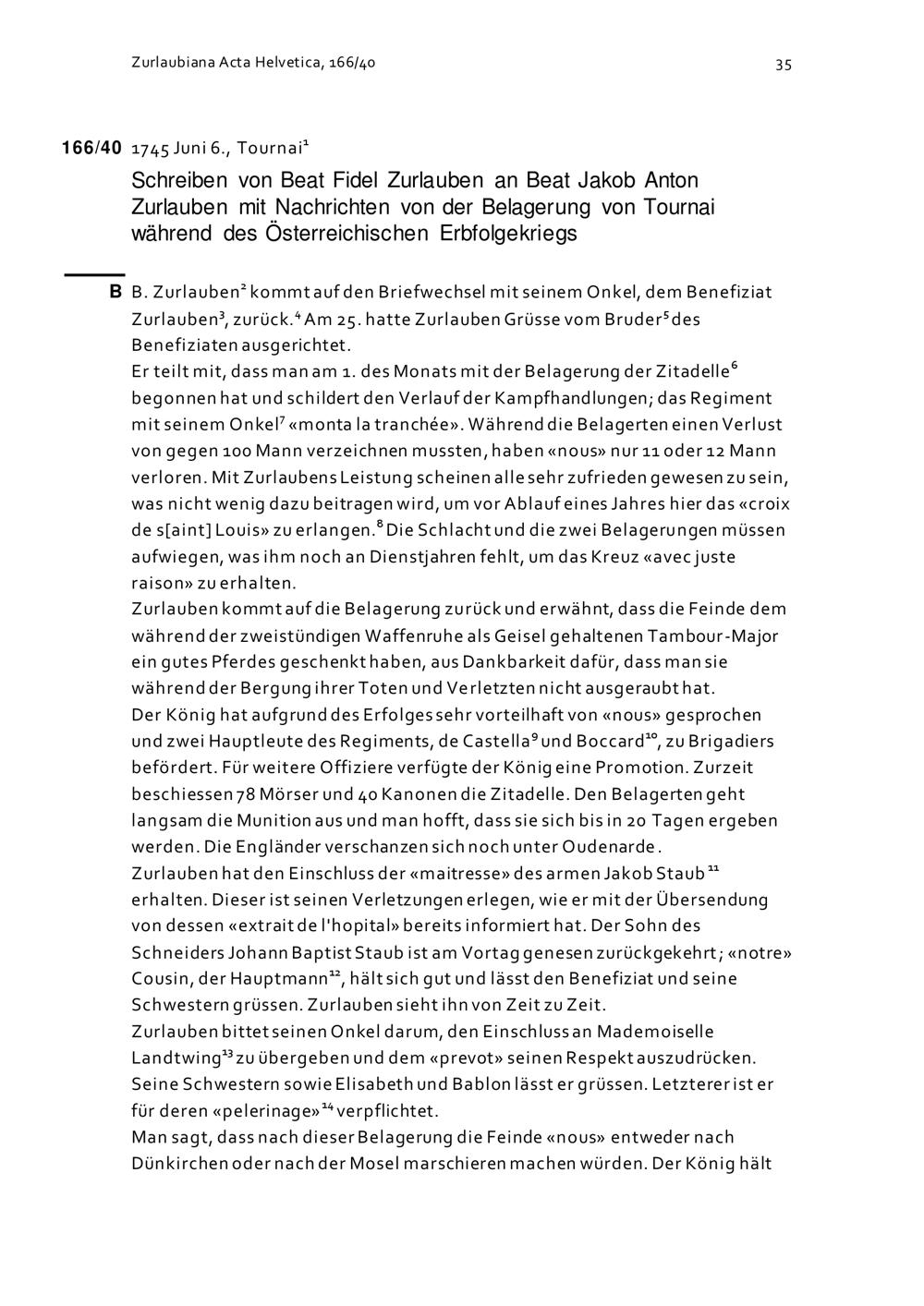 Schreiben von Beat Fidel Zurlauben an Beat Jakob Anton Zurlauben mit Nachrichten von der Belagerung von Tournai während des österreichischen Erbfolgekriegs