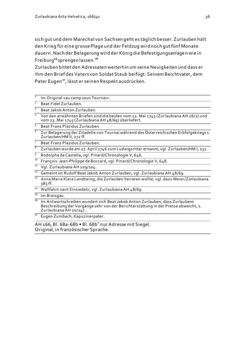 Schreiben von Beat Fidel Zurlauben an Beat Jakob Anton Zurlauben mit Nachrichten von der Belagerung von Tournai während des österreichischen Erbfolgekriegs